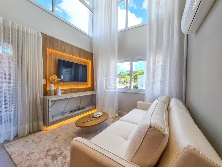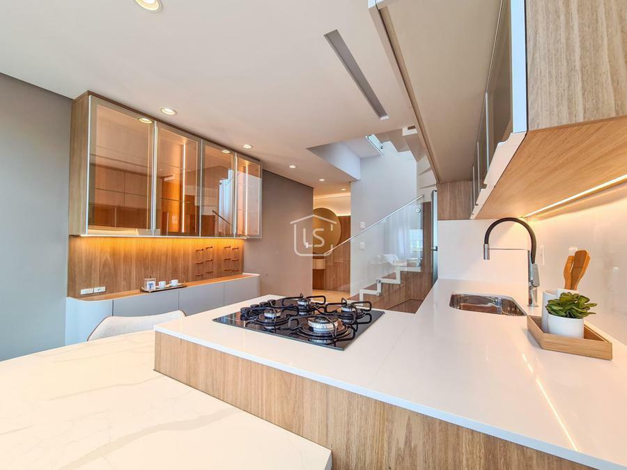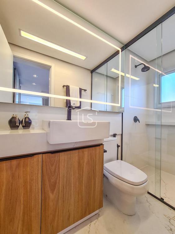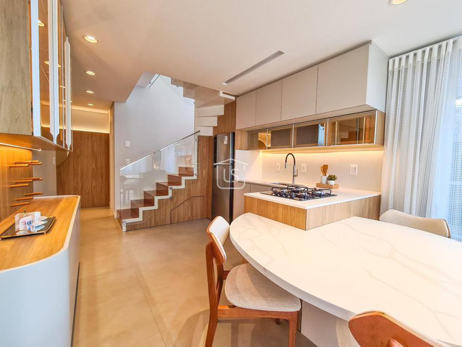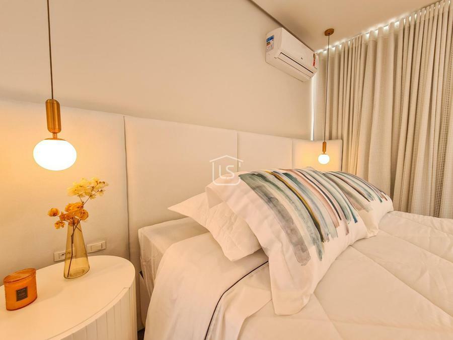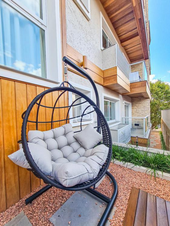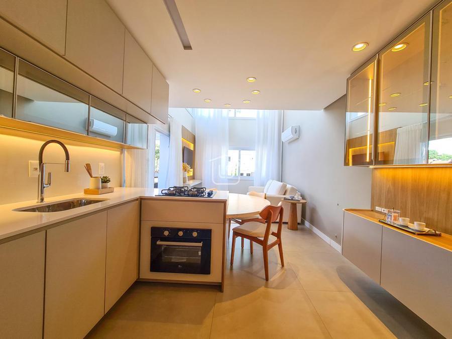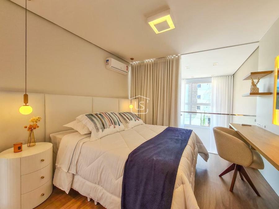 Belíssimo loft, NOVO, nunca habitado, mobiliado e decorado, distribuído em 1 suíte, living dois ambientes com lareira e sacada com churrasqueira, cozinha americana e lavabo.