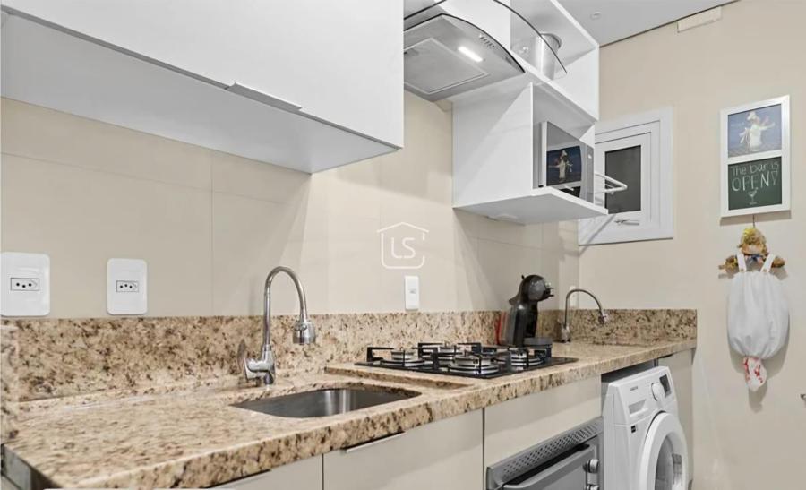 Cozinha americana com churrasqueira.