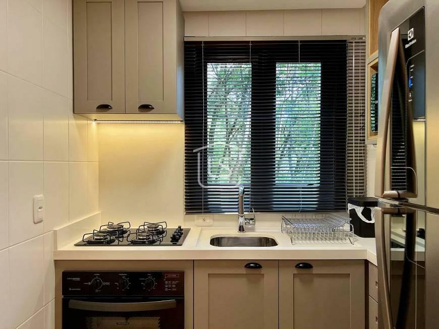 Distribuído em sala de estar, cozinha e jantar integrados, 1 dormitório com ampla sacada e banho social. Área de serviço separada. Vaga coberta de estacionamento.