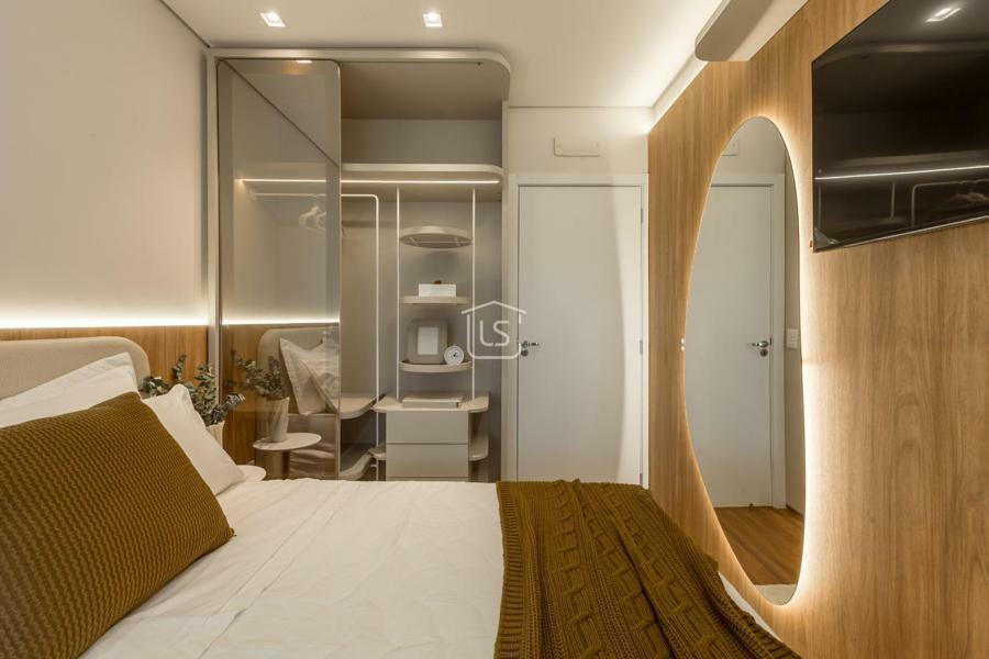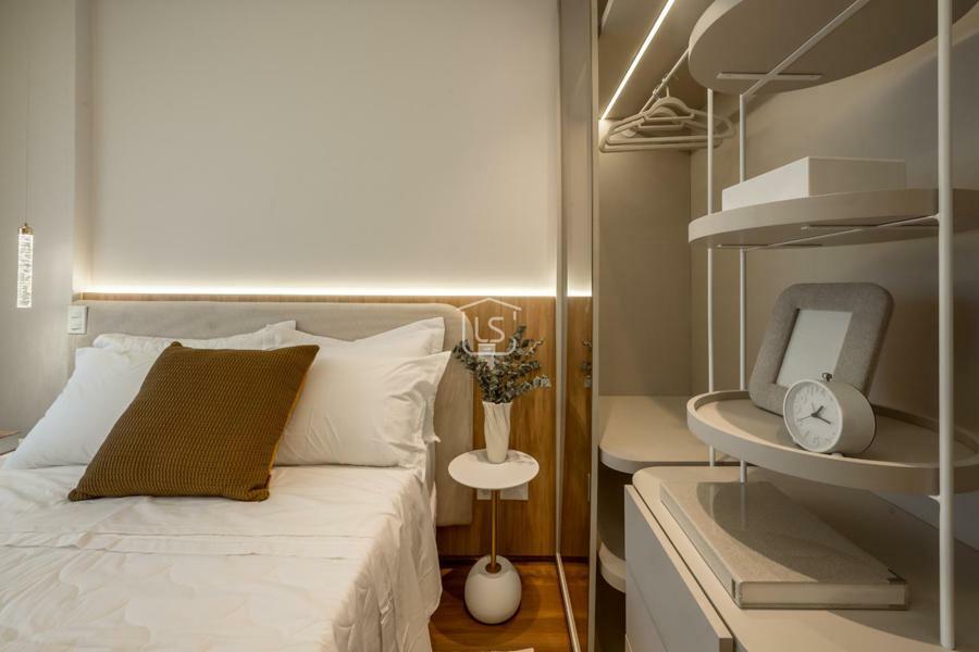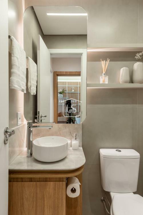 Um dormitório e banheiro social.