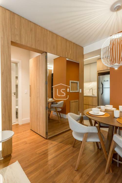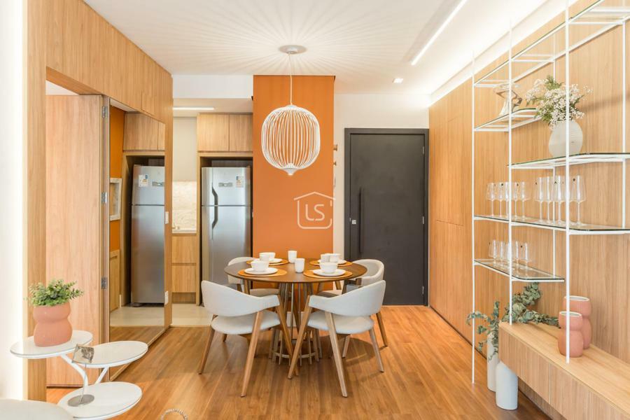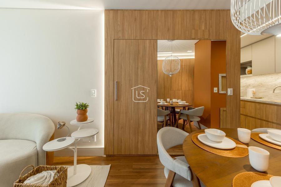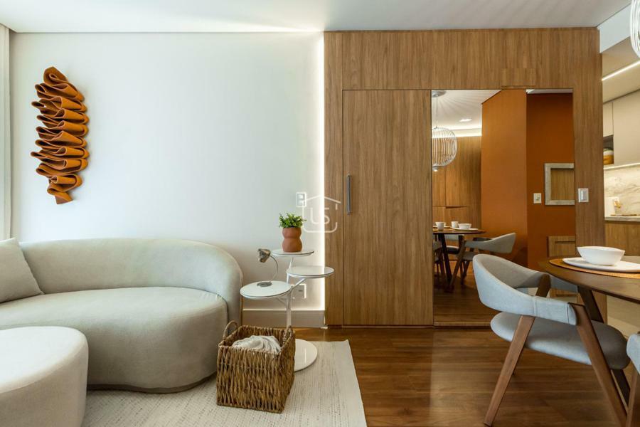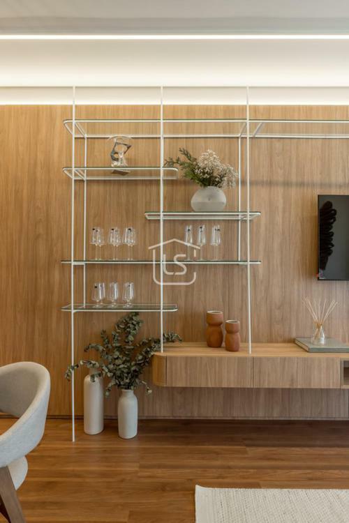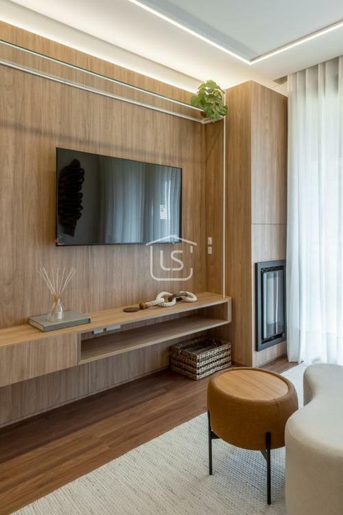Living dois ambientes com lareira canadense.