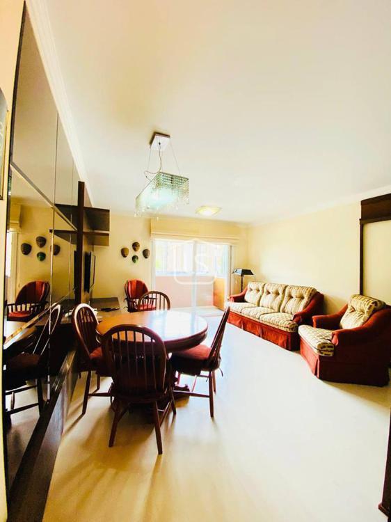 Amplo apartamento, distribuído em 2 dormitórios sendo uma suíte. Sala de estar com sacada e churrasqueira, sala de jantar e cozinha americana com bancada. Banho social e vaga coberta de garagem.