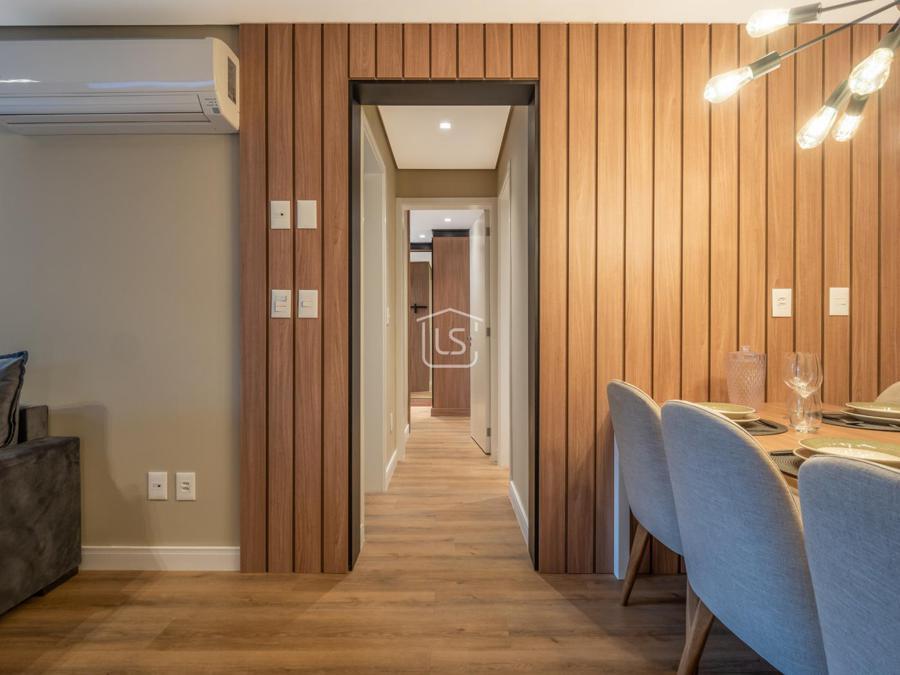 Distribuído em 2 dormitórios sendo 1 suíte, amplo living dois ambientes com espera para lareira, cozinha com churrasqueira e área de serviço integrada. Banho social e vaga coberta de garagem.