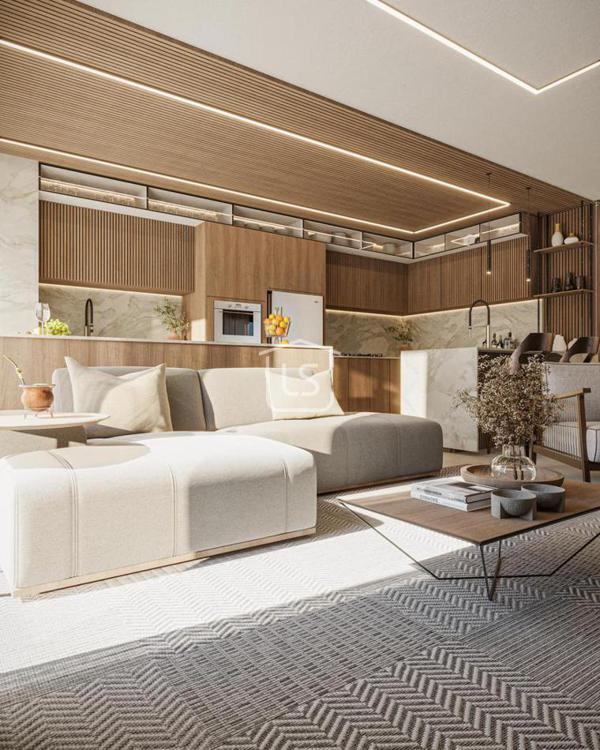 Apartamento distribuído em 2 suítes, living dois ambientes com espera para lareira, cozinha com churrasqueira e área de serviço integrada. Lavabo e vaga coberta de garagem.