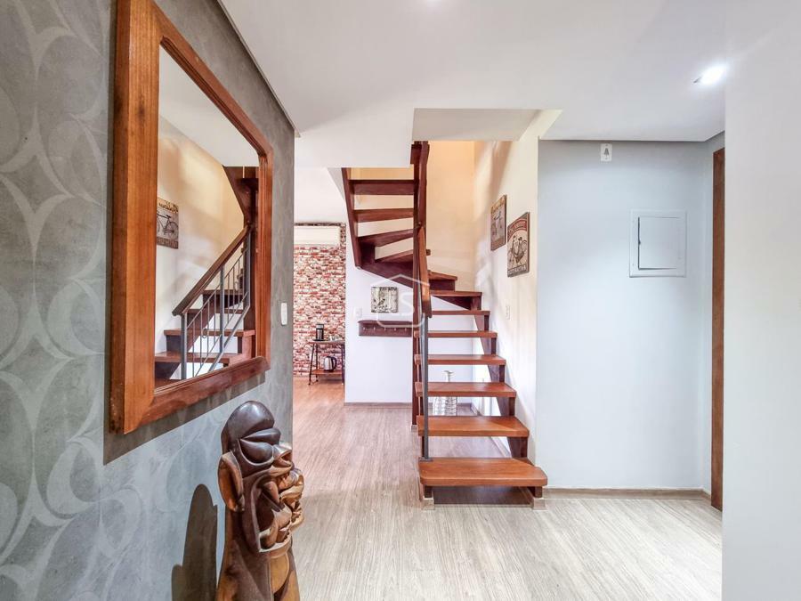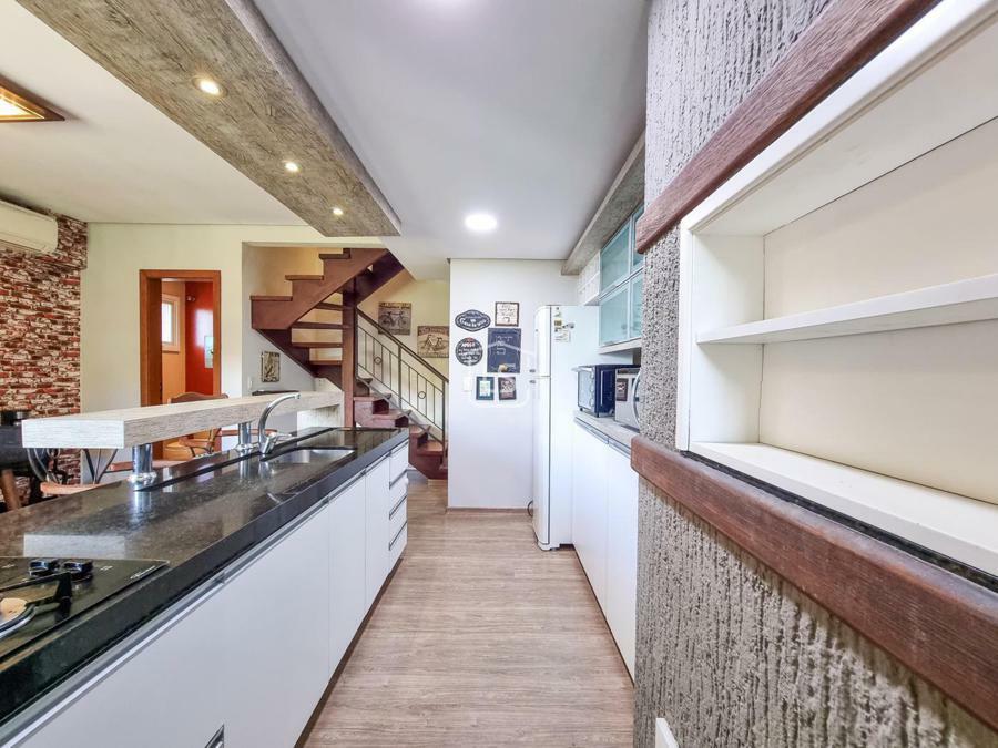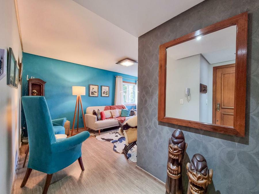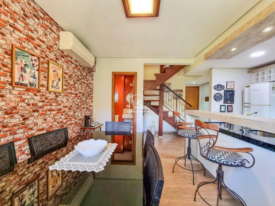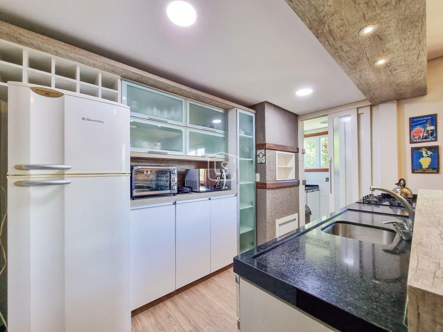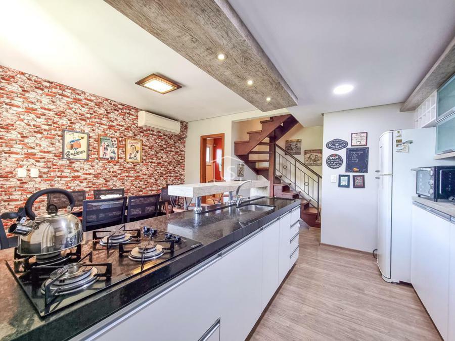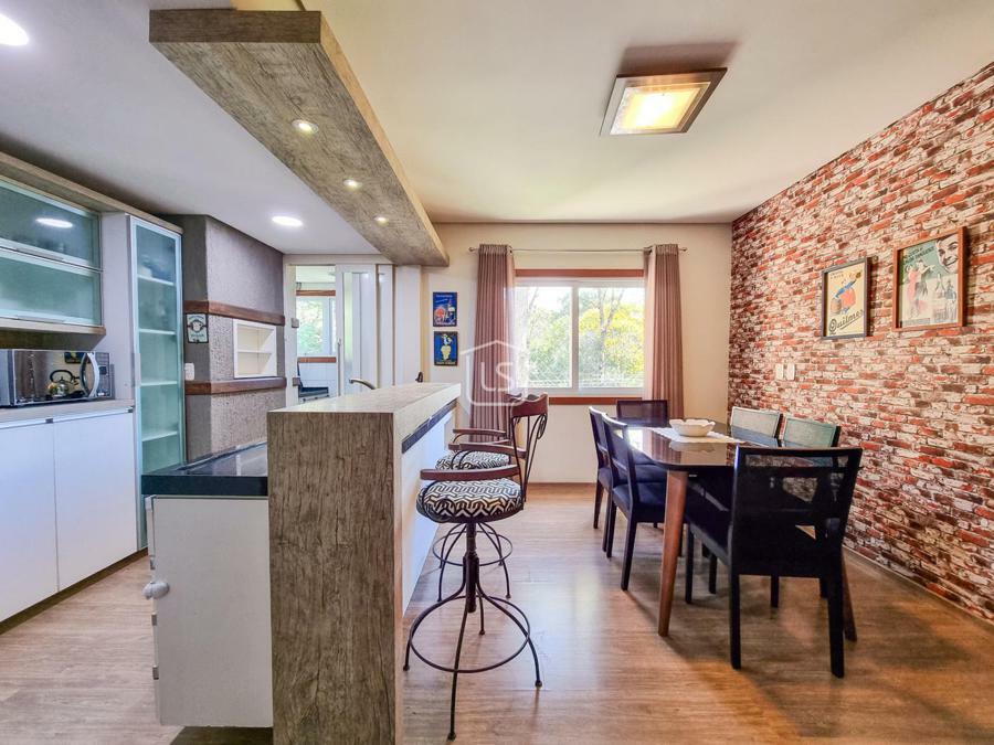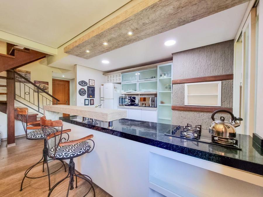 Apartamento duplex, distribuído em 2 dormitórios sendo 1 suíte, sala de estar com lareira e sacada integrada, cozinha com churrasqueira e área de serviço, sala de jantar, lavabo e banho social.