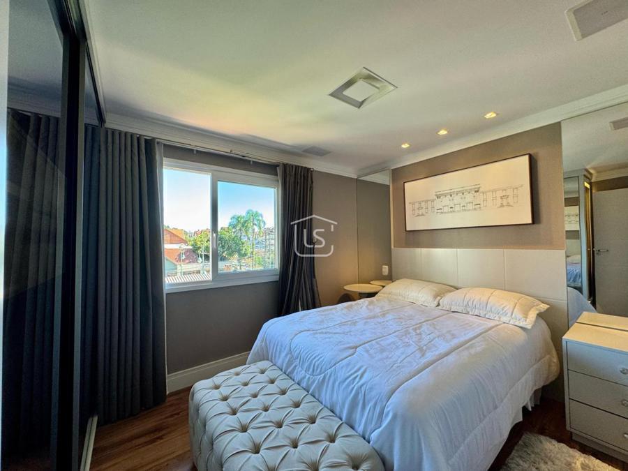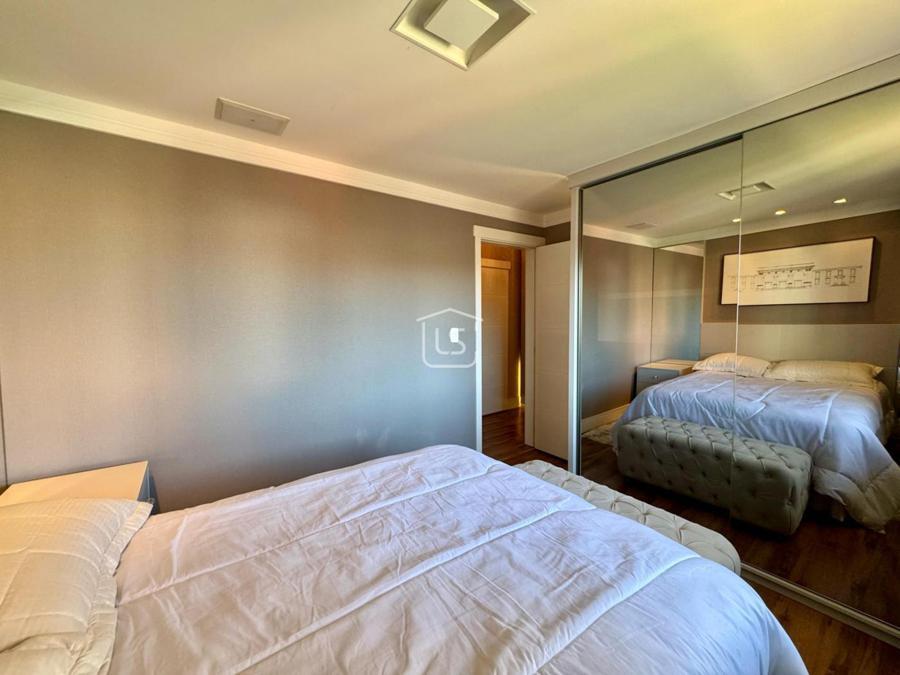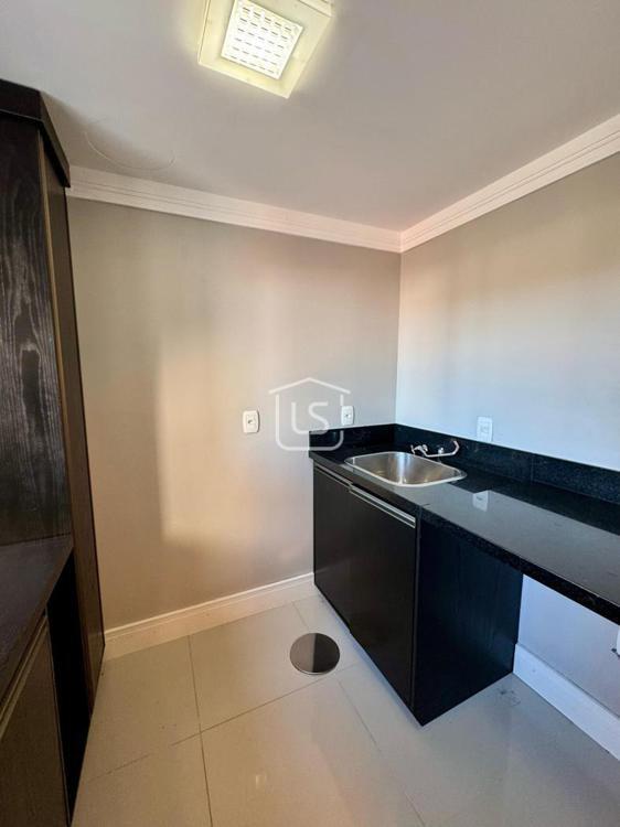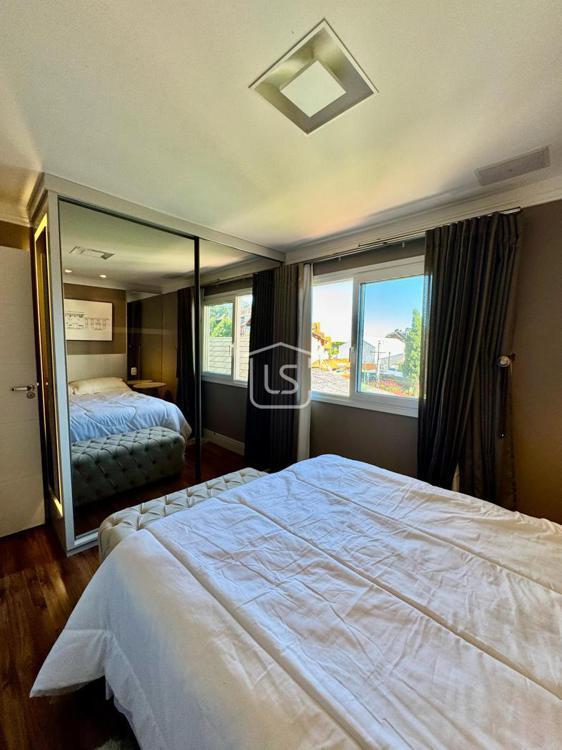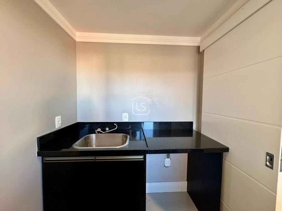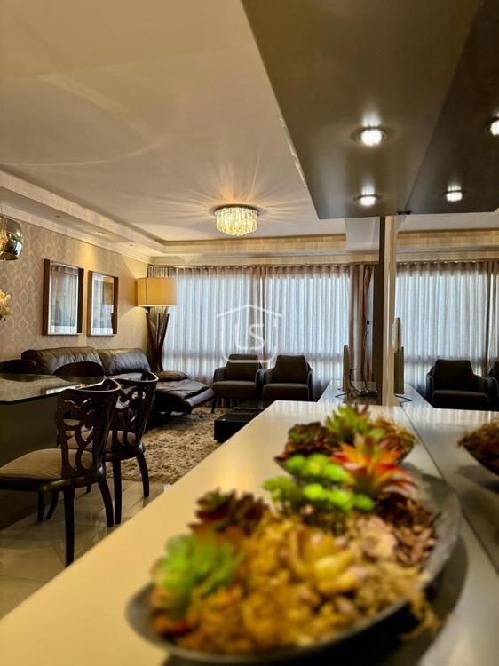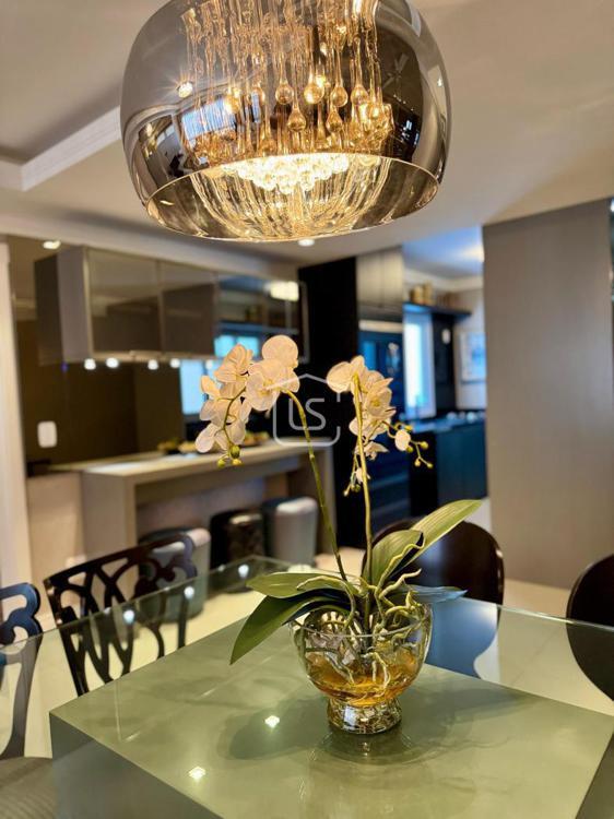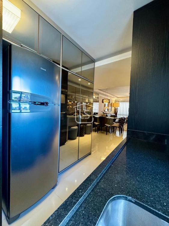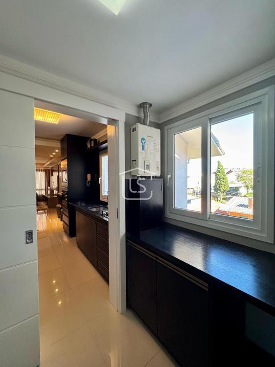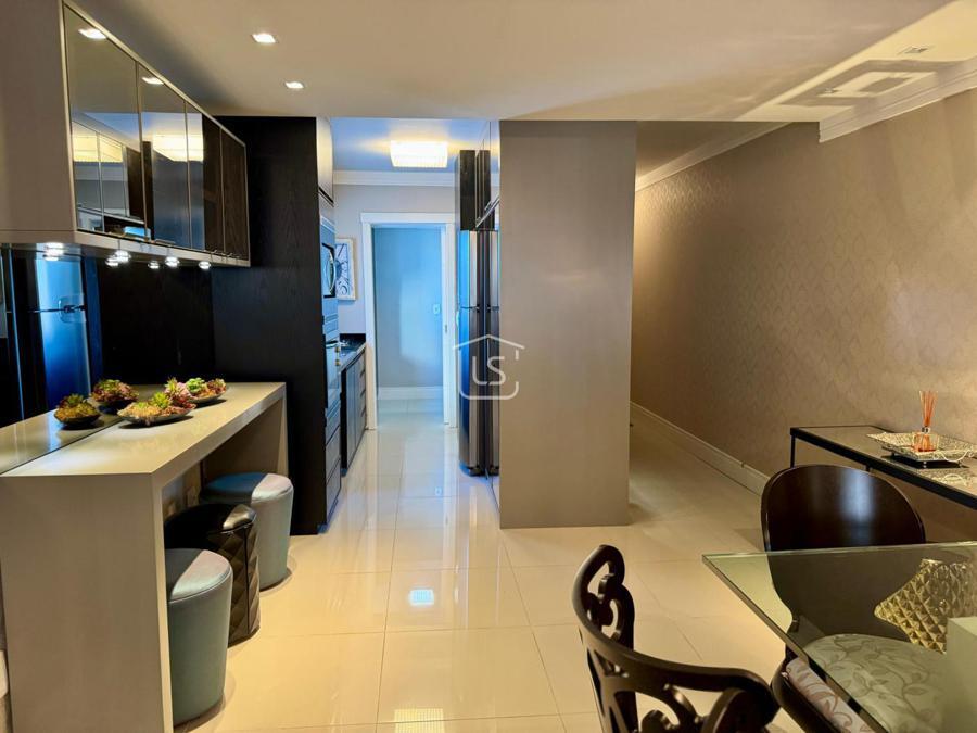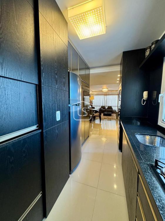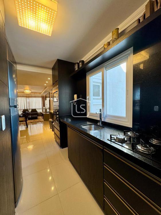 Sala de estar e jantar integradas, cozinha mobiliada e equipada com churrasqueira.