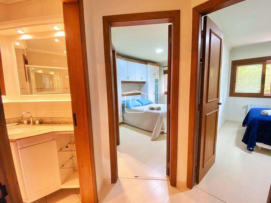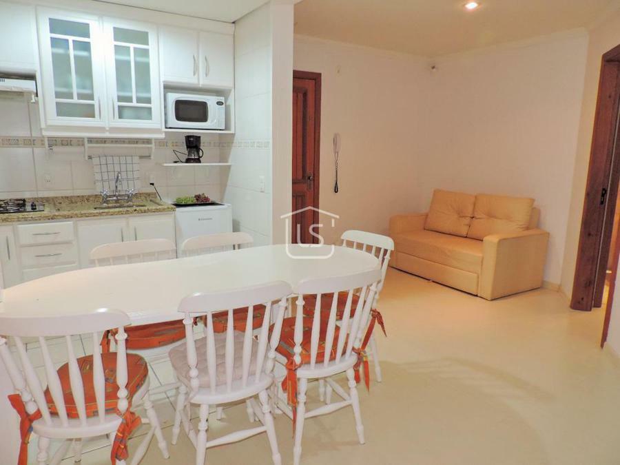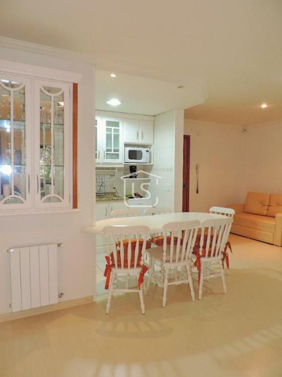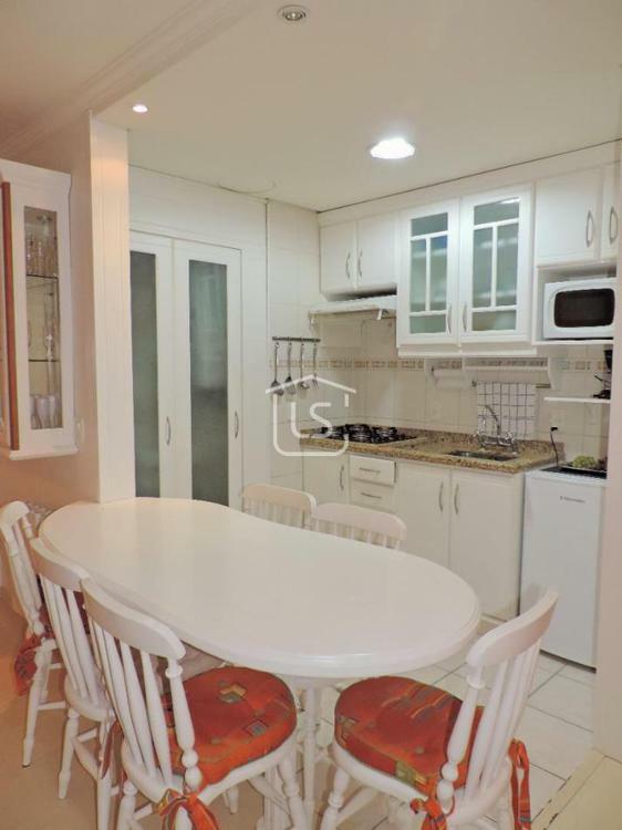 Excelente apartamento, mobiliado e equipado, bem distribuído em dois dormitórios, sendo um suíte, amplo living dois ambientes com sacada e churrasqueira, banho social, cozinha americana, área de serviço, calefação, splits e água quente instalados e vaga de garagem.