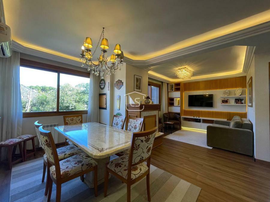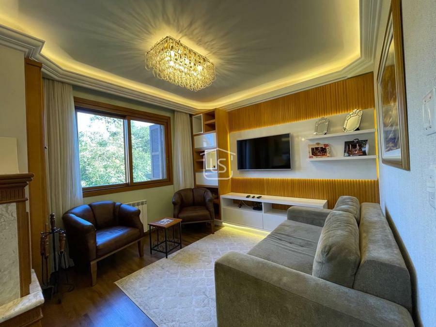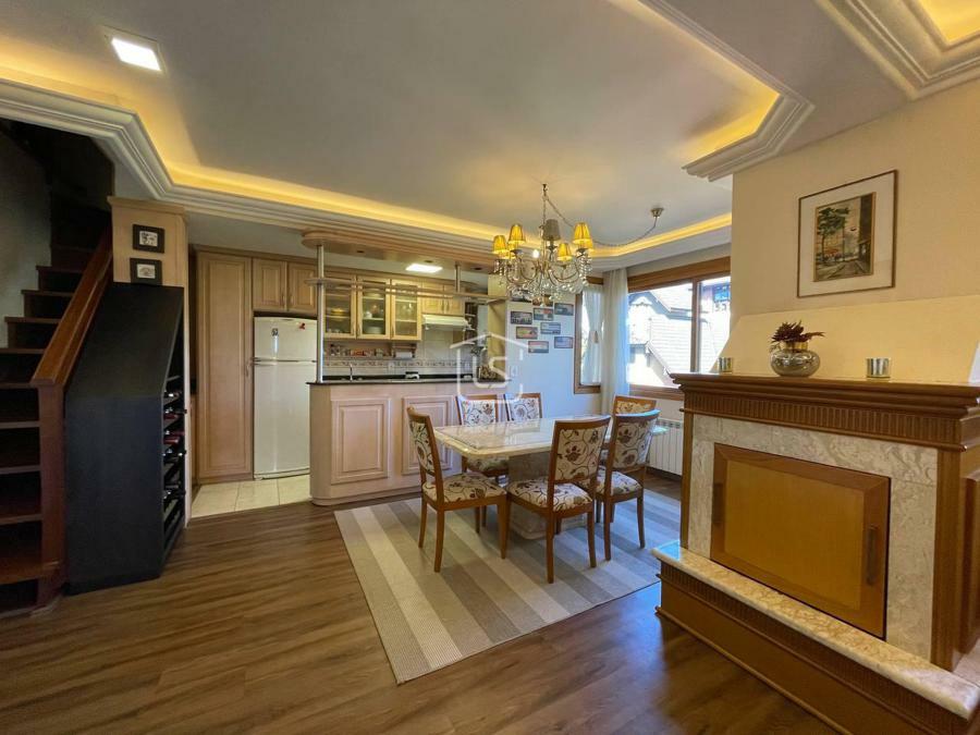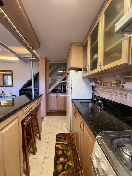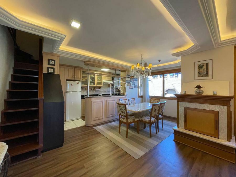 Distribuído em 2 dormitórios, living dois ambientes lareira, cozinha americana com churrasqueira e área de serviço integrada.