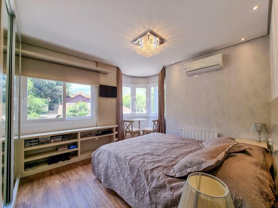 Bem distribuído em 2 dormitórios sendo 1 suíte, living dois ambientes com lareira, cozinha com churrasqueira e área de serviço. Amplo garden coberto, banho social, água quente, calefação e split instalados. 1 vaga de garagem.