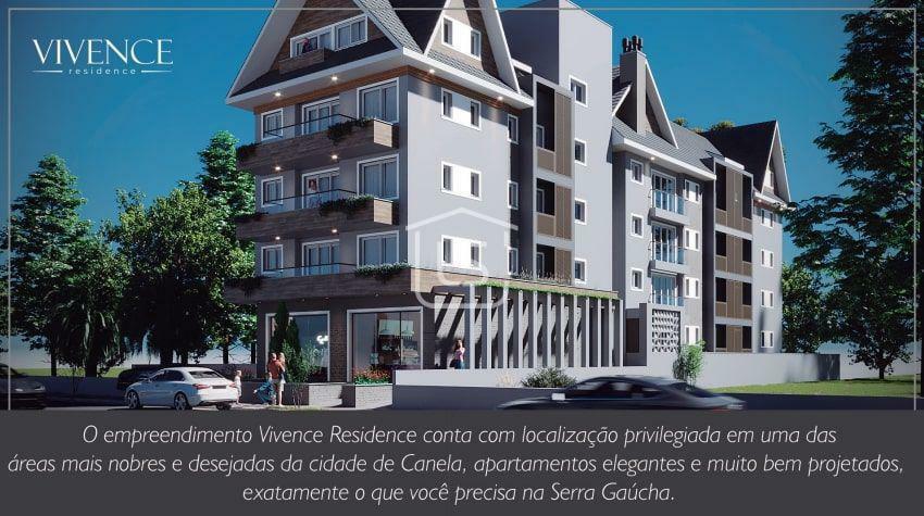 Conta com a localização privilegiada em uma das áreas mais nobres e desejadas da cidade de Canela, apartamentos elegantes e muito bem projetados, exatamente o que você precisa na Serra Gaúcha. Edifício com elevador, porteiro eletrônico e garagem coberta no subsolo. Apartamentos com varanda, churrasqueira, esquadrias de PVC com vidro duplo, esperas para Split, medidor de água e gás individuais. Piso laminado com isolamento acústico nas áreas intimas. Porcelanato Classe A nas áreas sociais.