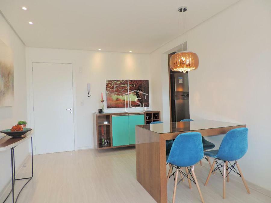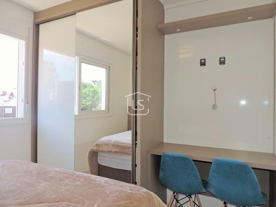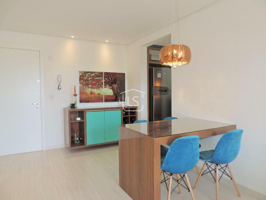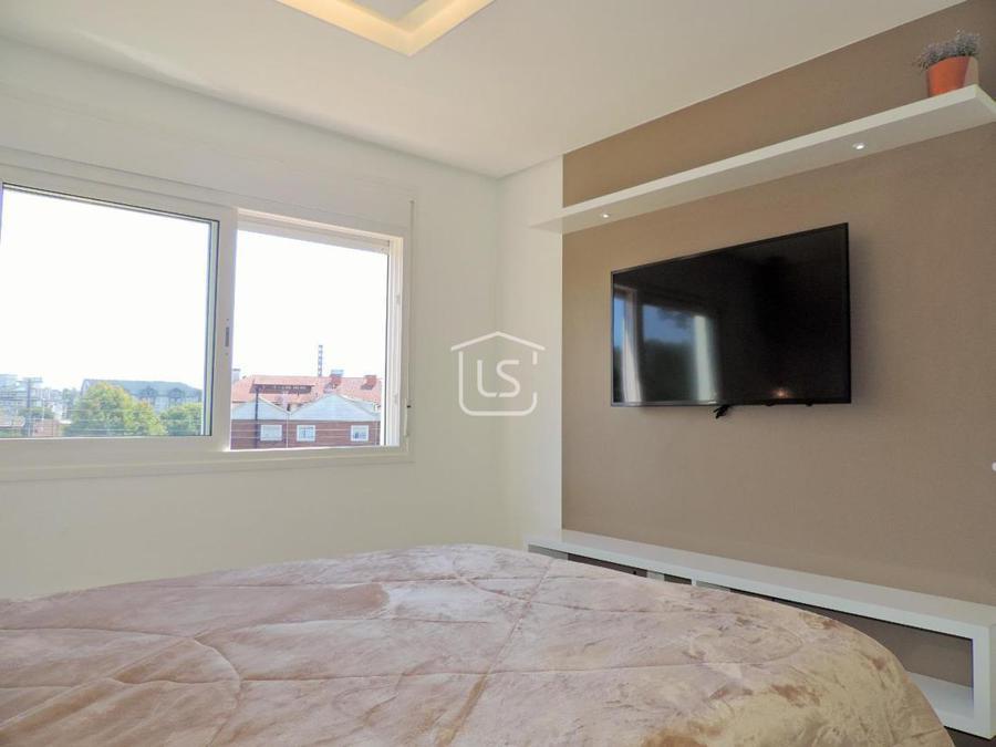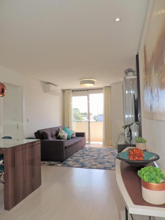Centro de Canela!!Excelente apartamento de frente, mobiliada e equipado, bem distribuído em 2 dormitórios, sendo um suíte, banho social, sala de estar com sacada, cozinha americana com churrasqueira, área de serviço, split e água quente instalados e vaga de garagem.Condomínio com hall de entrada, elevador e jardim.