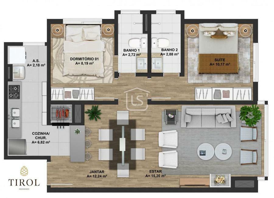 LANÇAMENTO EM GRAMADO!!!Residencial Tirol!Empreendimento localizado em bairro residencial, um projeto único que privilegia o conforto, a privacidade e o prazer de se viver bem!! Conta com apenas 16 unidades, bem distribuídas em 1 e 2 dormitórios com suíte, amplo living dois ambientes com lareira, cozinha com churrasqueira, vaga de garagem e linda vista para área verde. Diferenciais:* Vista permanente;* Cozinha com churrasqueira;* Espera para calefação e ar condicionado;* Esquadrias em PVC, com vidro termo acústico;* Espera para lareira;* Espera para carro elétrico;* Bicicletário.Condições especiais de pagamento direto com a construtora.Entrega prevista para Maio de 2024