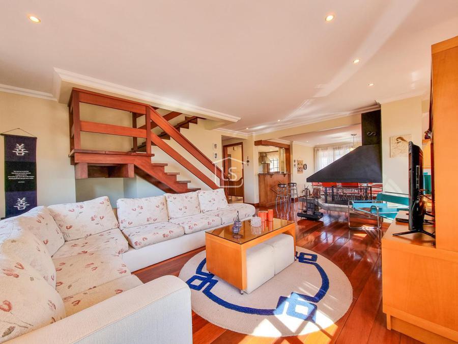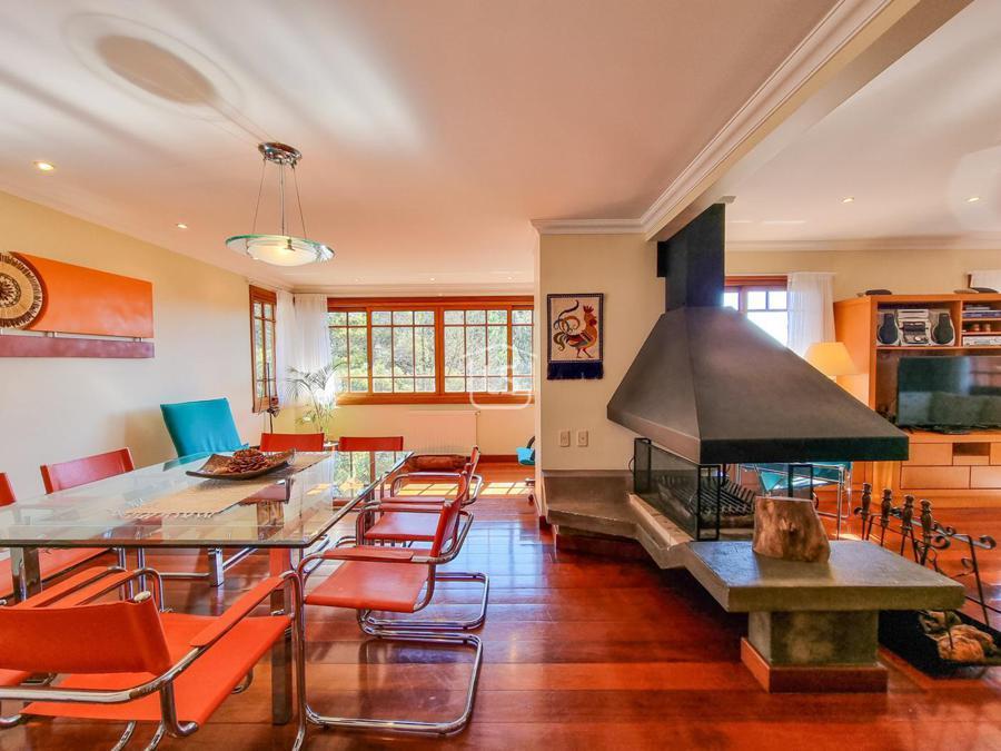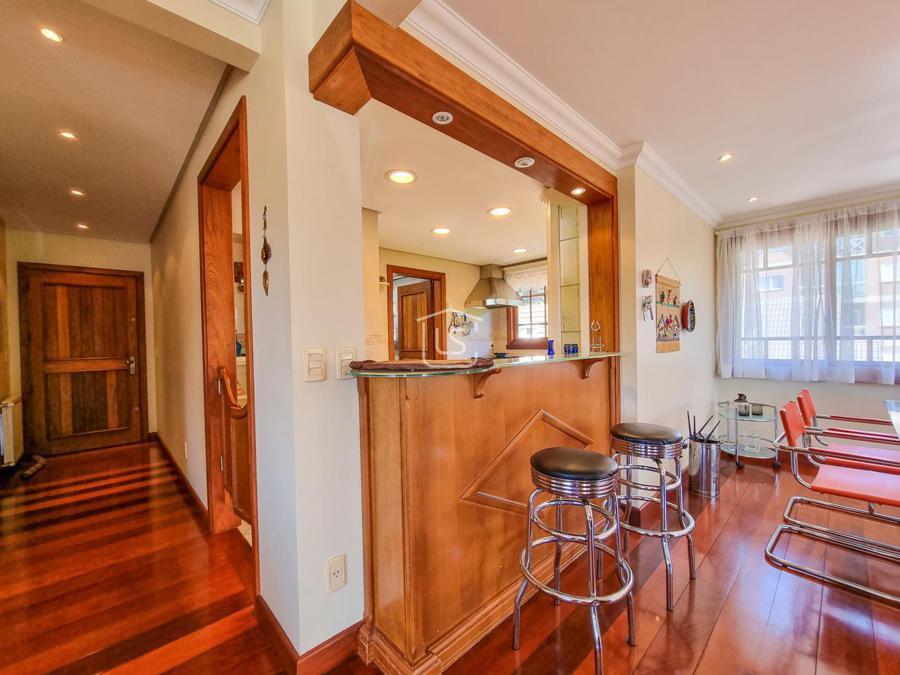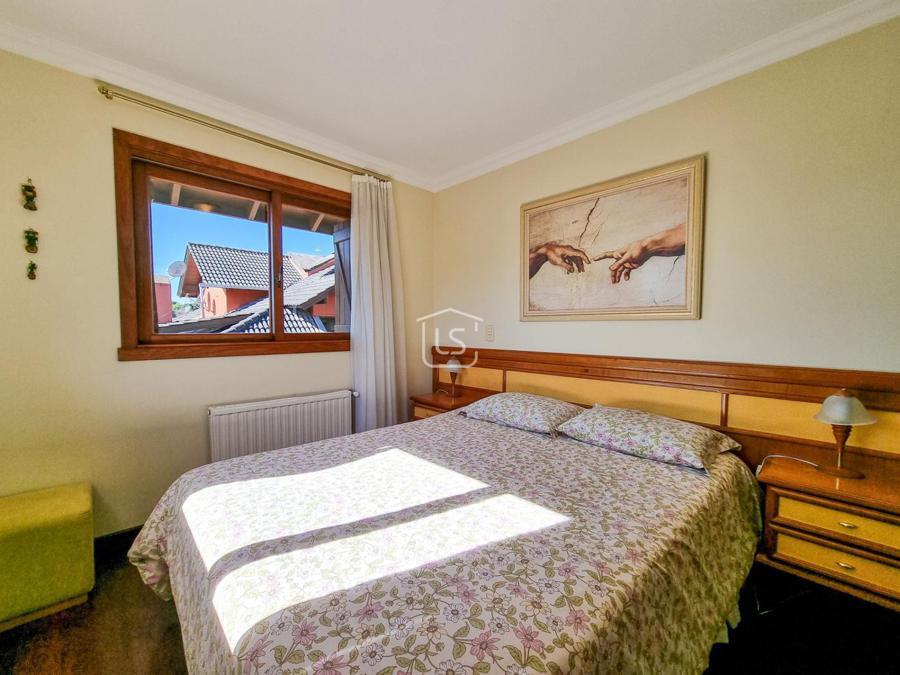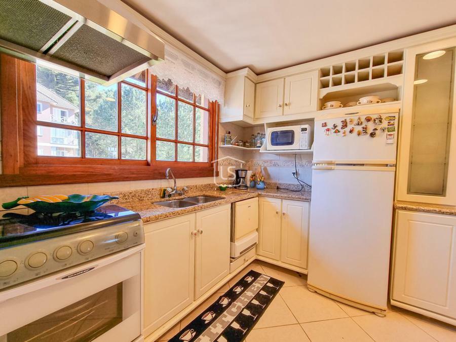 Apartamento duplex, mobiliado, distribuído em 3 dormitórios sendo uma suíte com closet, banheira de hidromassagem e sacada. Sala de estar com lareira, sala de jantar, cozinha separada com churrasqueira e área de serviço. Lavabo e banho social.