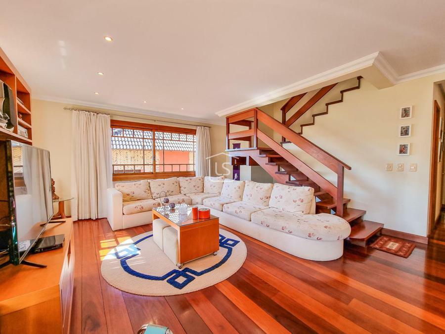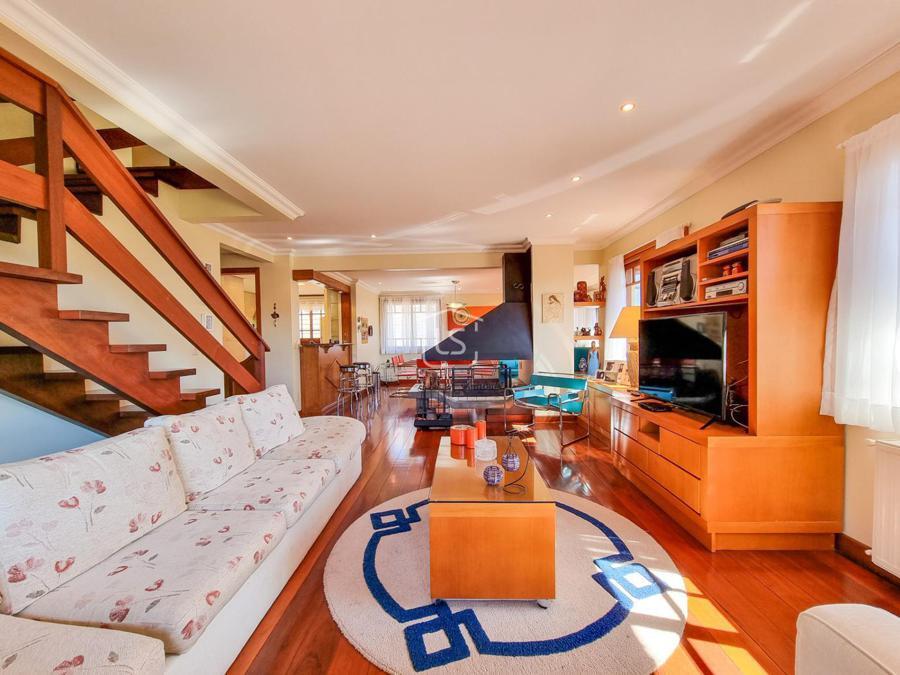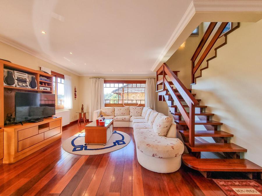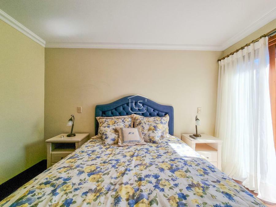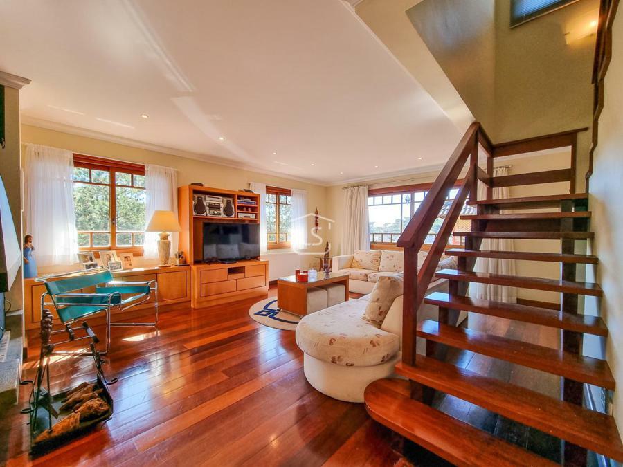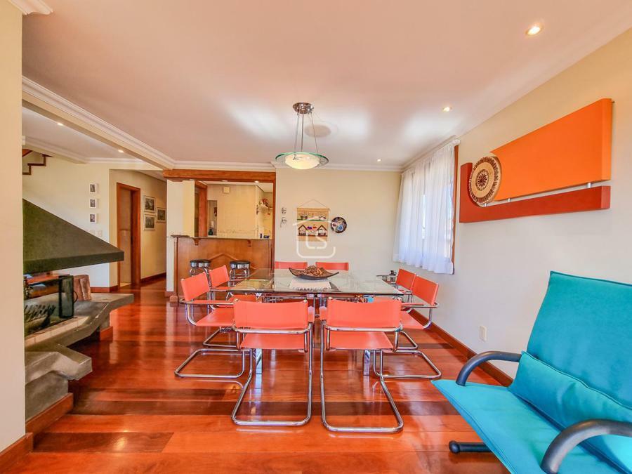Apartamento duplex, mobiliado, distribuído em 3 dormitórios sendo uma suíte com closet, banheira de hidromassagem e sacada. Sala de estar com lareira, sala de jantar, cozinha separada com churrasqueira e área de serviço. Lavabo e banho social.