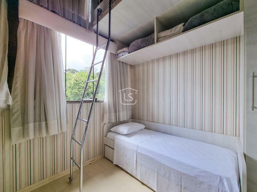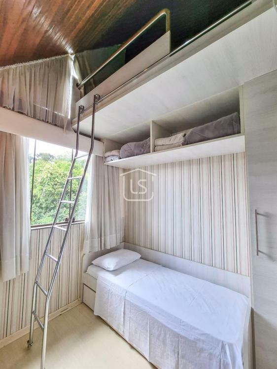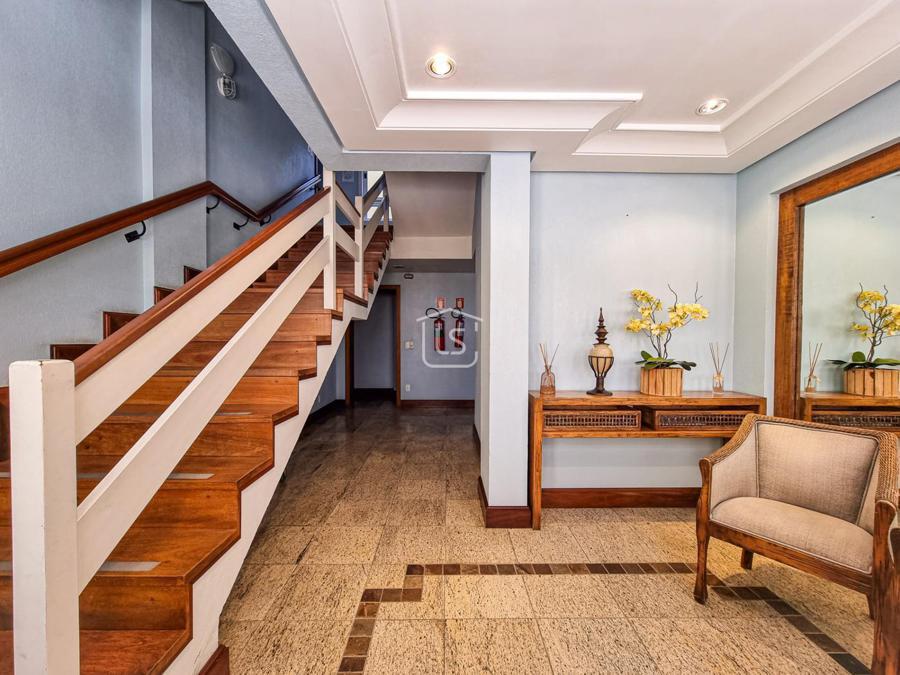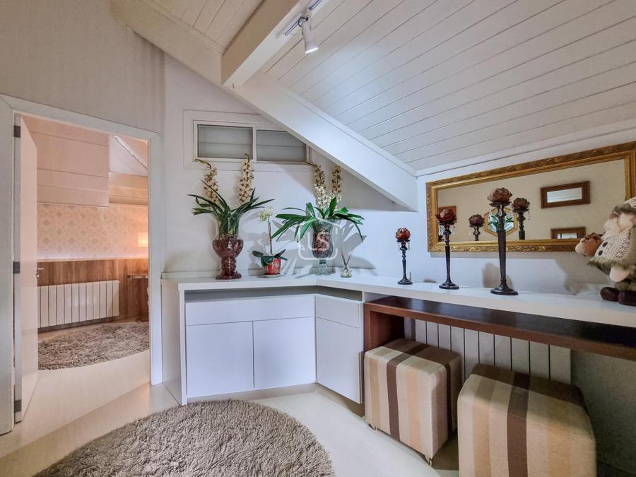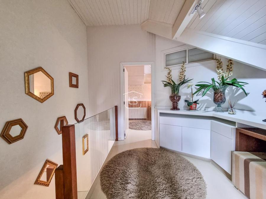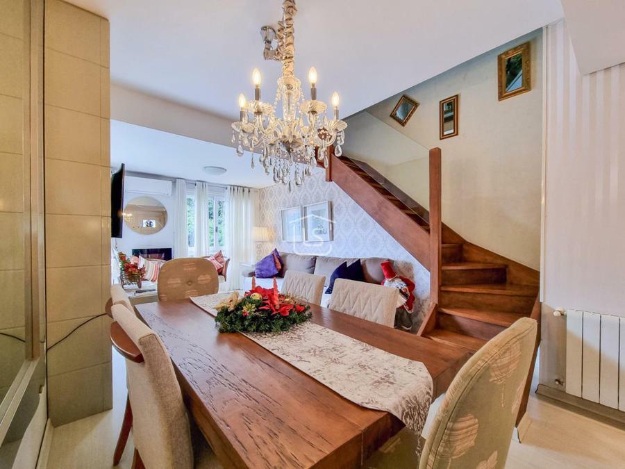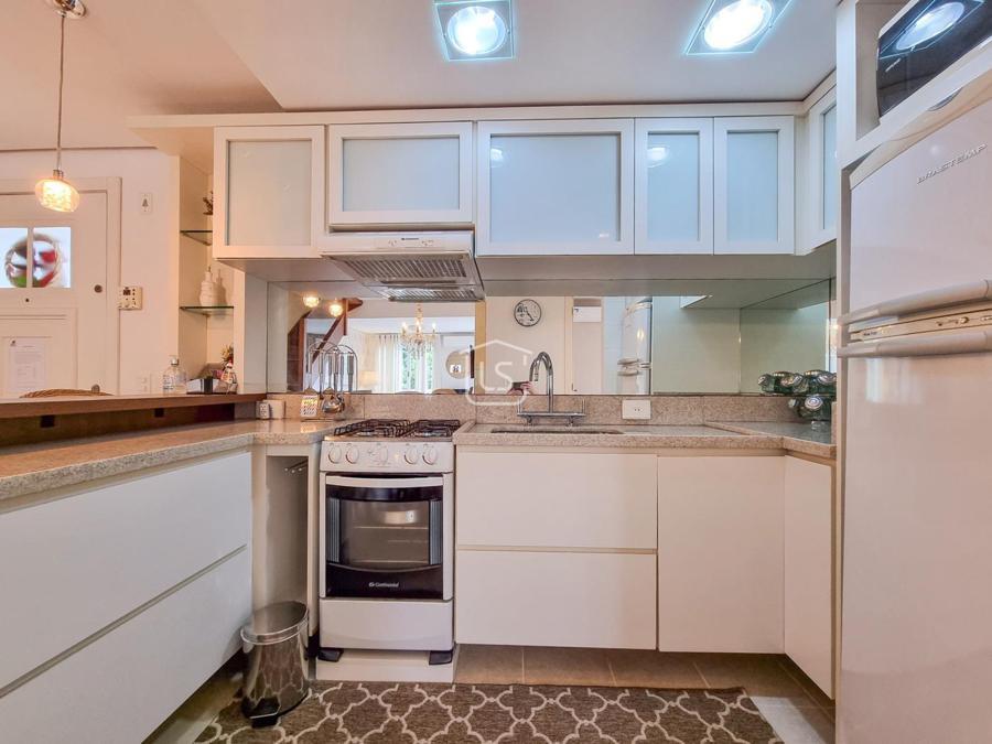 Distribuído em 3 dormitórios, um deles no térreo e outro suíte com closet. Living dois ambientes com lareira e sacada. Cozinha com bancada, banho social e vaga coberta de garagem.
