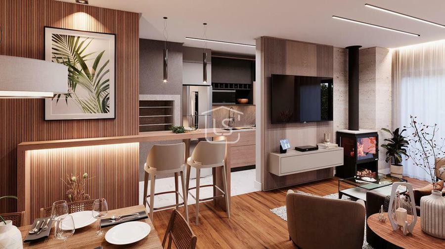 Apartamento distribuído em sala de estar jantar com sacada.