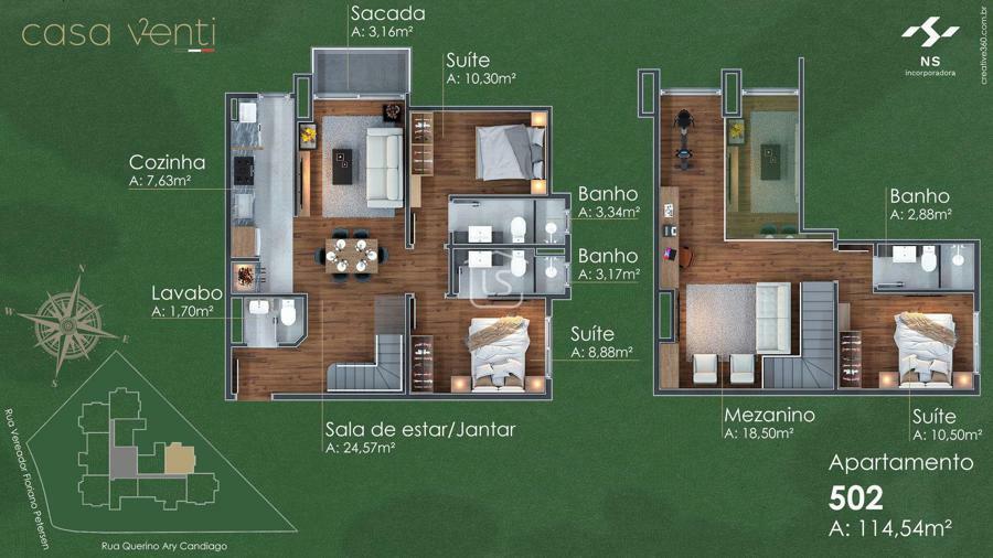 Três suítes e lavabo.