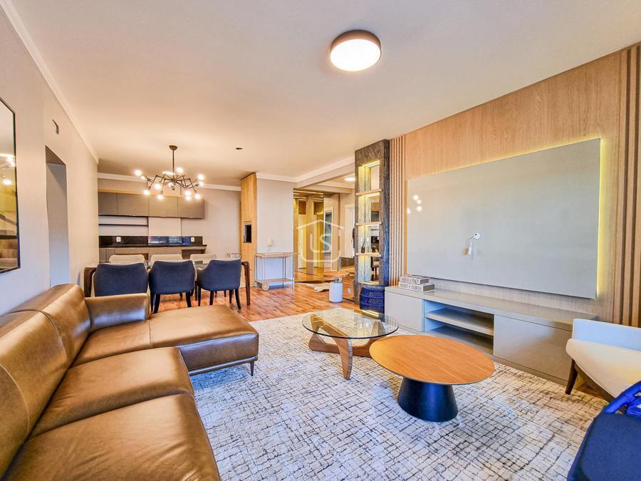 Distribuído em 3 suítes sendo uma delas com closet, ambientes amplos e integrados, estar com sacada e vista para a rua São Pedro. Cozinha com churrasqueira, despensa e área de serviço.