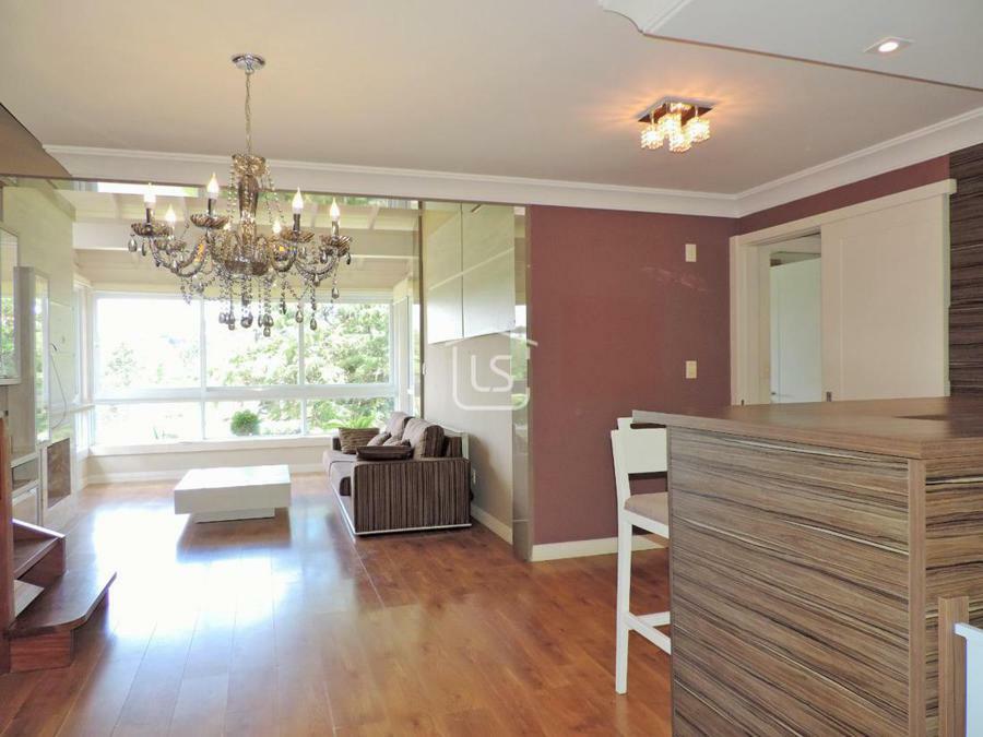 De frente para o lago mais desejado da Serra Gaúcha!! Apartamento com vista incrível para o Lago principal do Laje de Pedra, ensolarado, em andar alto, semi mobiliado, bem distribuído em 3 dormitórios, sendo um suíte, amplo living dois ambientes com lareira, cozinha americana com bancada e churrasqueira, banho social, área de serviço, calefação, água quente e split instalados, 2 vagas de garagem, sendo uma coberta e outra descoberta.Condomínio com lagos, playground, área de preservação e portaria 24h.Split, calefação, água quenteApartamento duplex sendo sala de estar com lareira.Sala de jantar.Cozinha com churrasqueira.Lavanderia.Banho social.2 dormitórios sendo 1 suíte.Mezanino com 1+ dormitório.Mobiliado.2 box de garagem sendo 1 coberto e 1 descoberto.