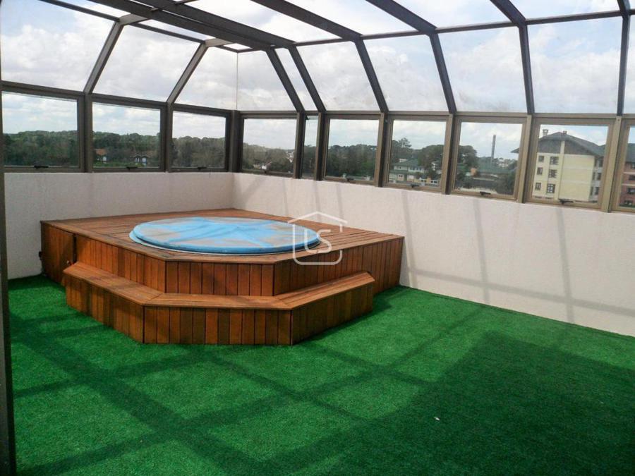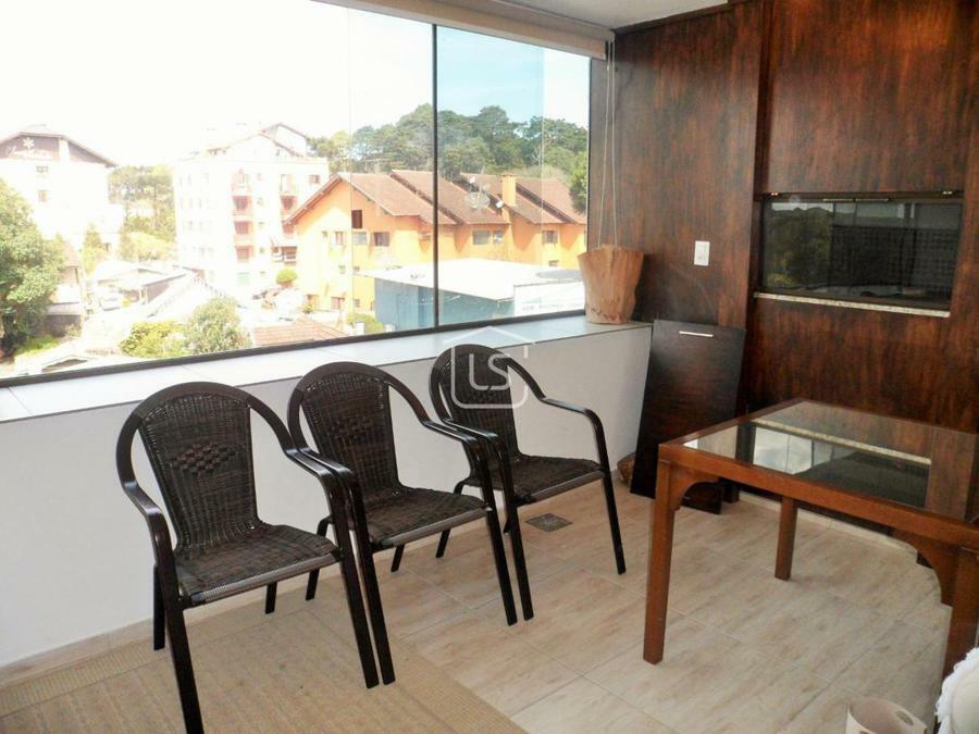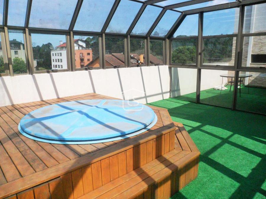 Junto ao centro de Canela!!!!Excelente apartamento, cobertura, de frente, com ótima posição solar, totalmente mobiliado e equipado, bem distribuído em 3 suítes, sendo 2 com closset, amplo living dois ambientes com espera para lareira, cozinha americana com bancada, sacada com churrasqueira, banho social, hall de entrada, lavanderia, calefação, água quente e split instalados e vaga de garagem. Terraço com churrasqueira e jacuzzi coberta. Condomínio com jardim e elevador.