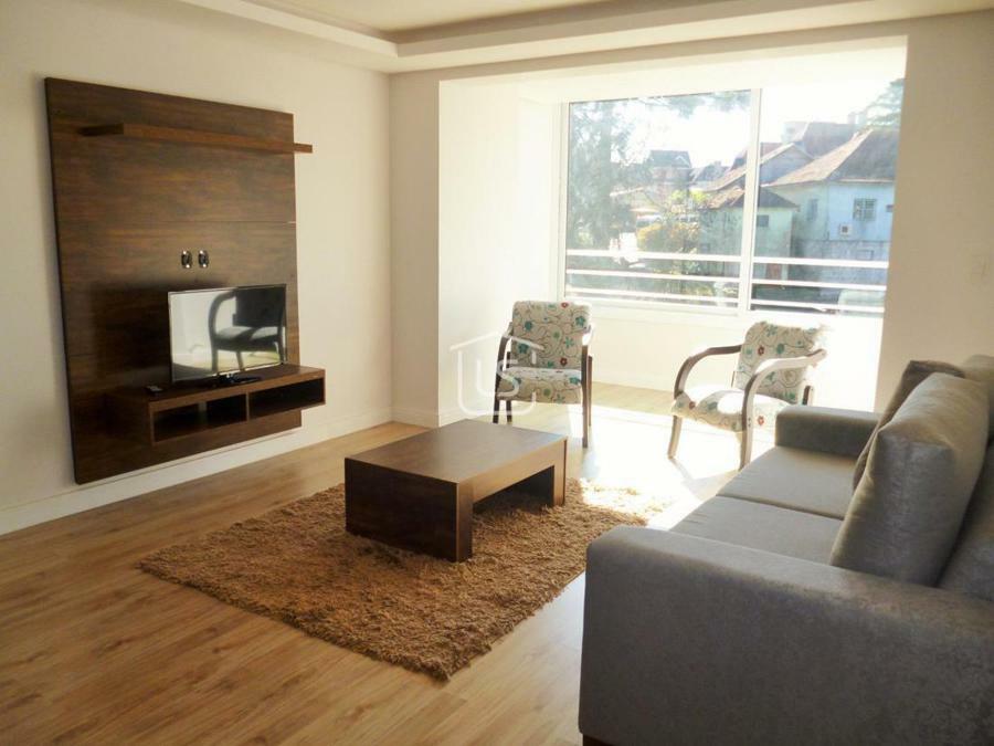 Localização ímpar de Gramado!!Excelente apartamento, em andar alto, semi mobiliado, com ótima posição solar, bem distribuído em 3 suítes, sendo uma com sacada integrada, amplo living dois ambientes com espera para lareira e sacada integrada e fechada, cozinha americana com churrasqueria, lavabo, lavanderia, esperas para calefação, água quente e split e 2 vagas de garagem.