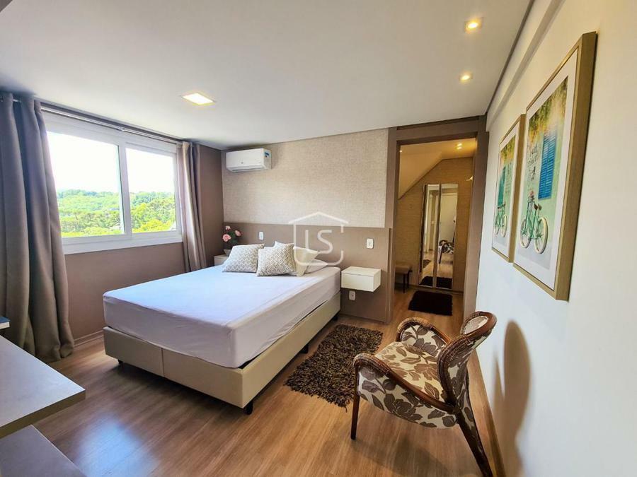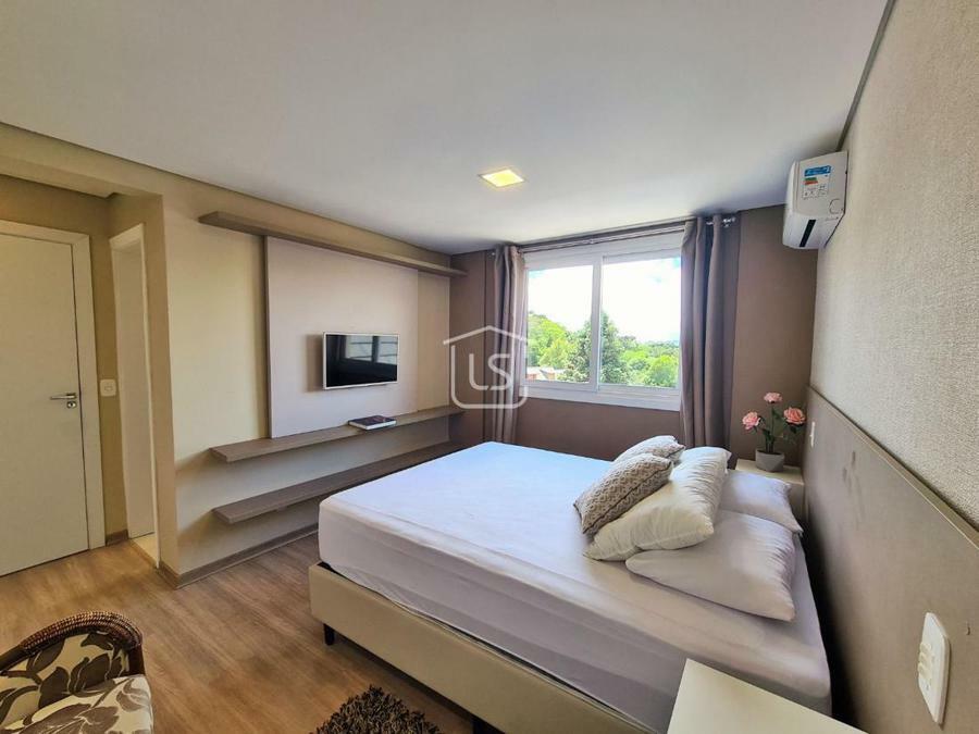 Ótimo apartamento, em localização residencial de Gramado, pronto para ocupar, finamente mobiliado e equipado, bem distribuído em 3 suítes todas com closet e uma com banheira, amplo living dois ambientes com lareira e sacada, cozinha estilo americana com bancada e churrasqueira, um pequeno espaço para leitura, lavabo, área de serviço, split e água quente instalados e 2 vagas de garagem.Condomínio com elevador e jardim.