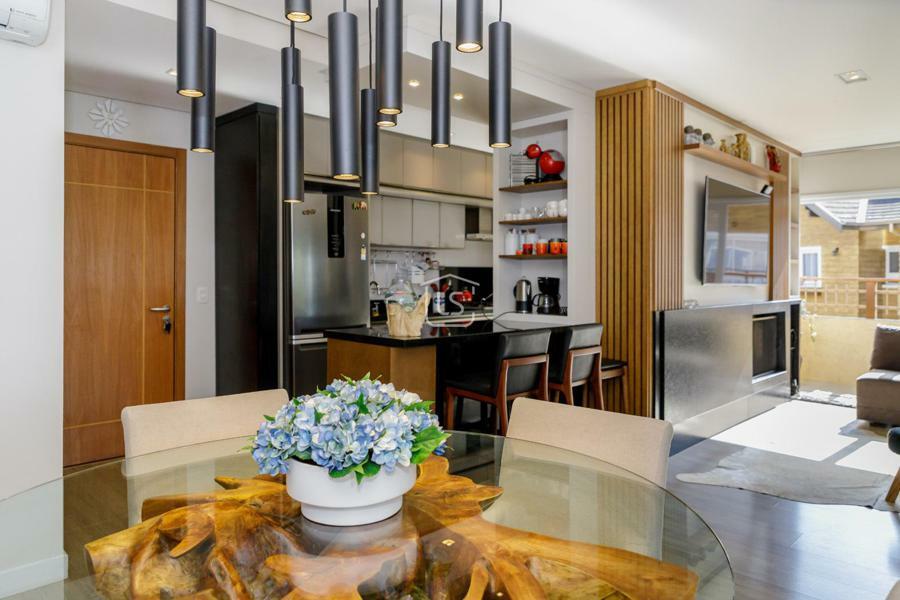 Apartamento bem distribuído em 4 dormitórios sendo 2 suítes, uma delas com closet. Ampla sala de estar, sala de jantar com lareira e sacada, sala de tv, cozinha com churrasqueira e área de serviço integrada. Lavabo e 2 banhos sociais. 2 vagas cobertas de garagem.