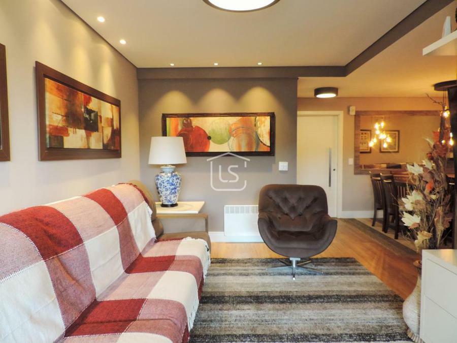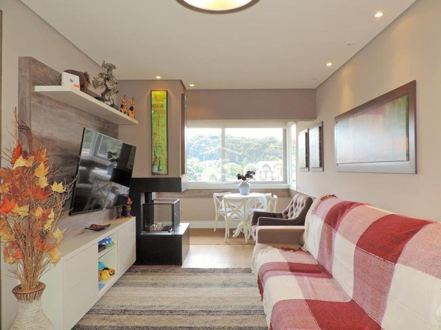 Centro de Canela!!!!!!!Excelente apartamento mobiliado e equipado, bem distribuído em 4 dormitórios, sendo um suíte, amplo living dois ambientes com lareira e sacada integrada, cozinha americana com bancada e churrasqueira, lavabo, banho social, área de serviço, calefação e água quente instalados e 2 vagas de garagem.Condomínio com salão de festas, elevador, jardim e zelador.