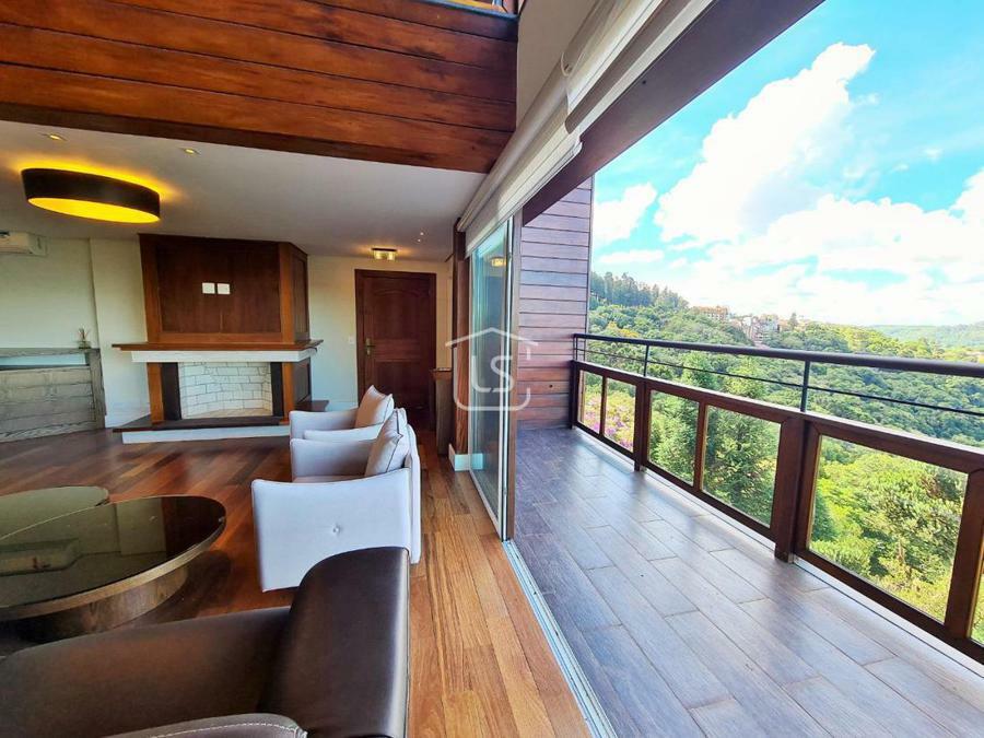 Apartamento no Centro de Gramado.Apartamento em Gramado com 5 dormitórios, com a vista Mais desejada da Serra Gaúcha!!Mobiliado e equipado, frente Vale do Quilombo, bem distribuído em 5 dormitórios, sendo 3 suítes térreas, uma com closset, amplo living dois ambientes com lareira e sacada, pé direito duplo, lavabo, cozinha separada, área de serviço com banho, espaço gourmet com bancada e churrasqueira, estar íntimo, lavabo, banho social, calefação, água quente e split instalados e 2 vagas de garagem.Condomínio em meio a muita natureza e ao mesmo tempo no centro da cidade em uma das melhores e mais valorizadas localizações.