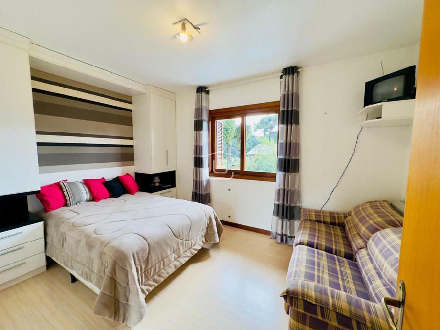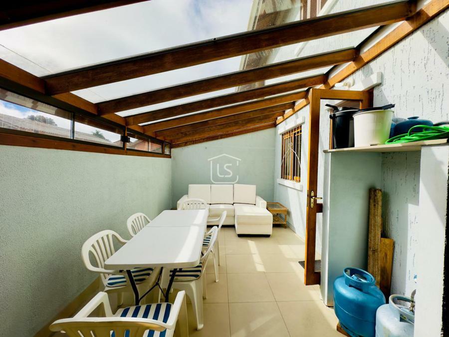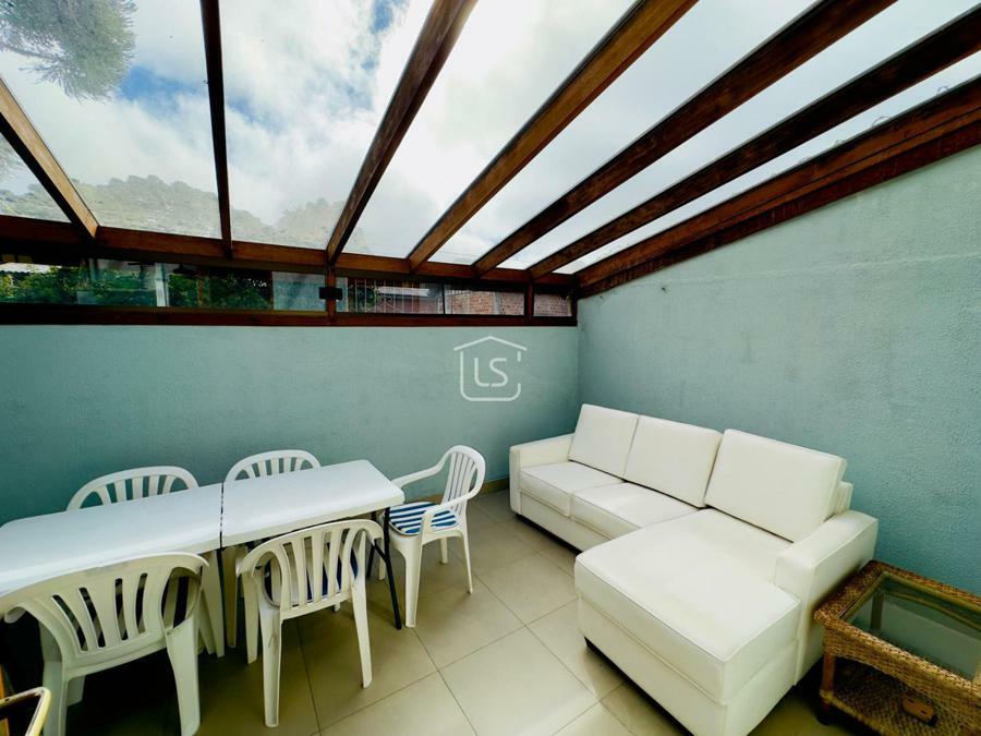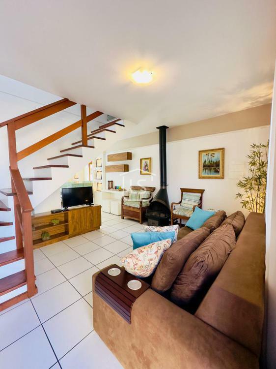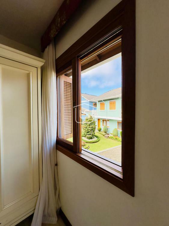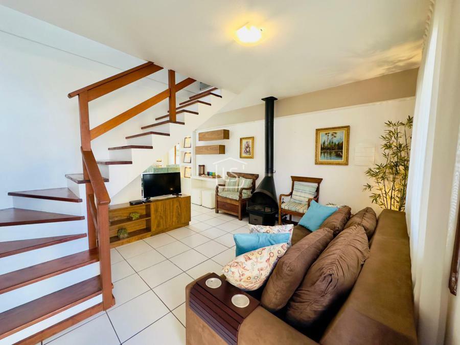 Residência em condomínio horizontal, mobiliada e equipada bem distribuída em 2 dormitórios, sendo um com sacada, banho social, living dois ambientes com lareira, cozinha integrada, área de serviço, Garagem fechada com solarium e churrasqueira, água quente instalada.