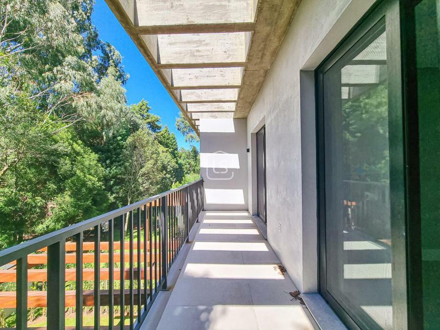 Bem distribuída em 3 dormitórios sendo 1 suíte e os dormitórios contam com ampla sacada e vista para o jardim. Living dois ambientes com lareira, cozinha americana com churrasqueira, área de serviço e varanda com pergolado. Lavabo e banho social no segundo pavimento.