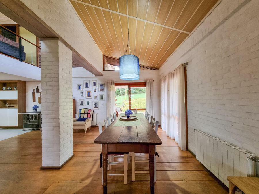 A casa esta distribuída em 3 dormitórios sendo um deles suite com closet, ela foi construída com paredes duplas de tijolo à vista, proporcionando isolamento térmico e acústico, calefação central a diesel da marca Broilo, garantindo que cada cômodo esteja aconchegante, além da cozinha bem projetada e da despensa para manter tudo organizado.