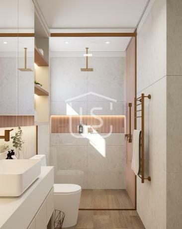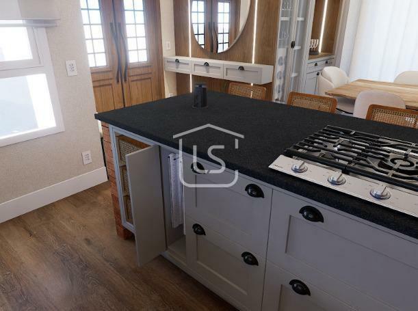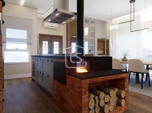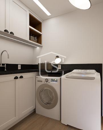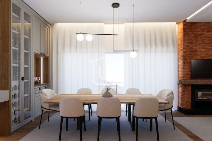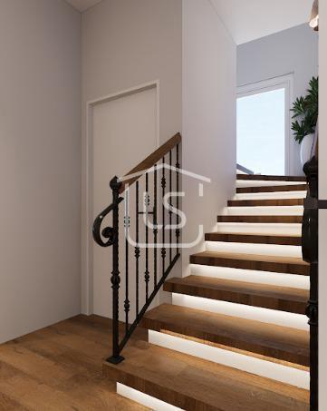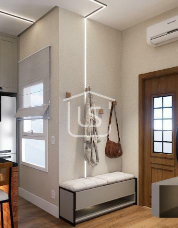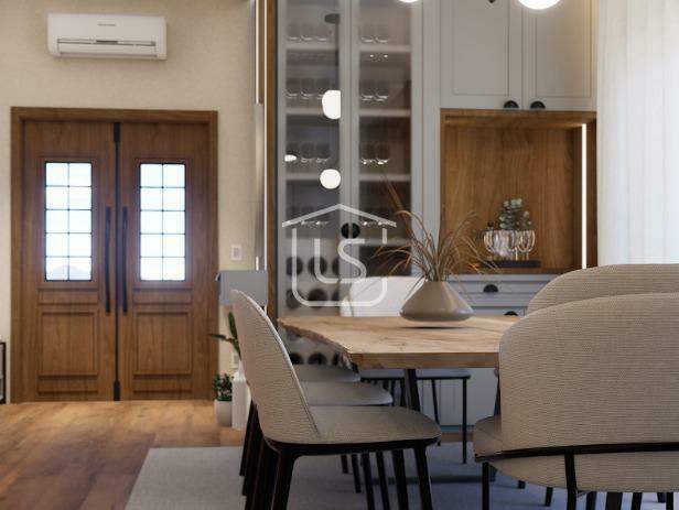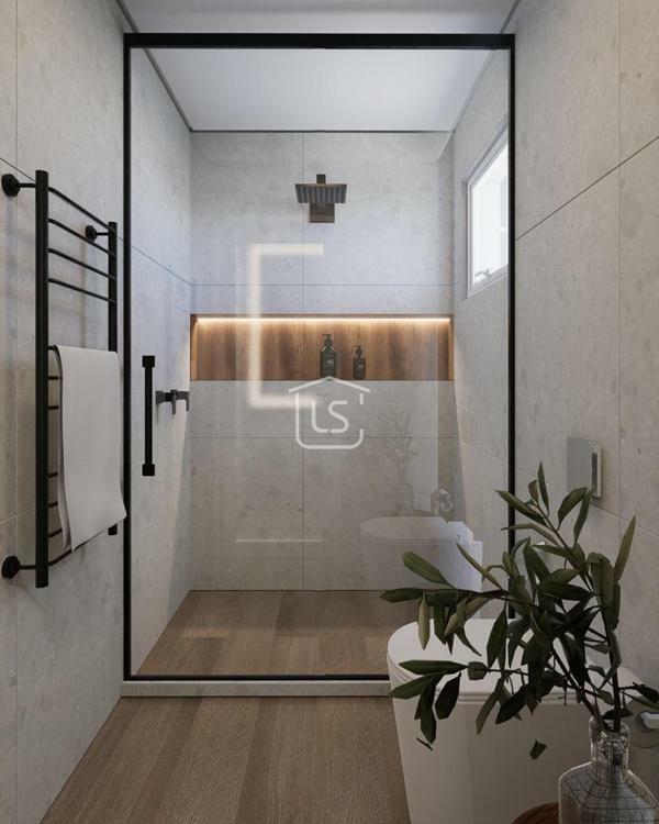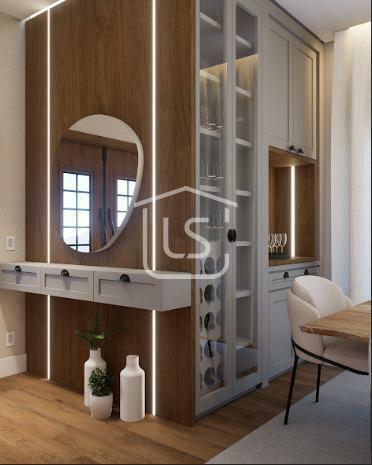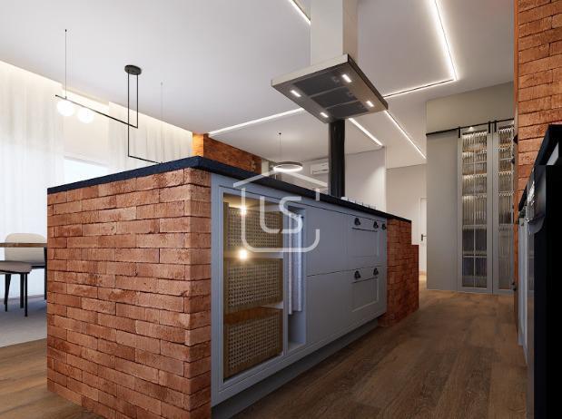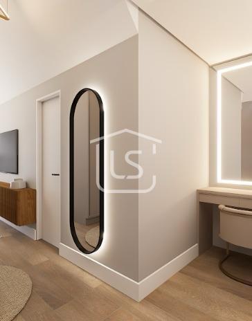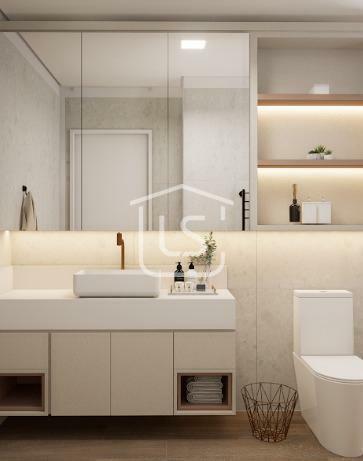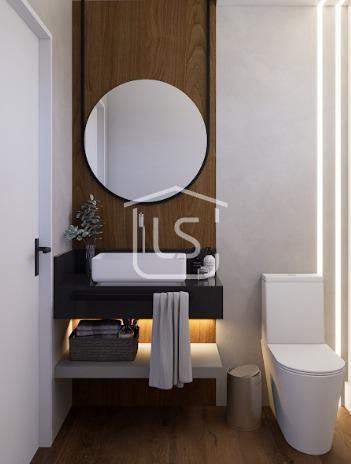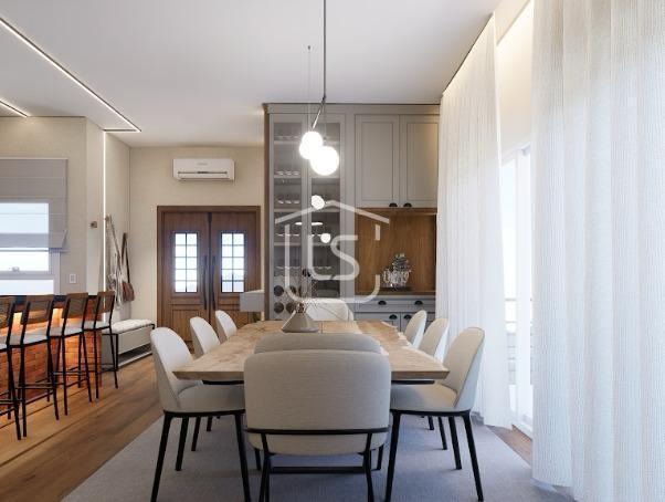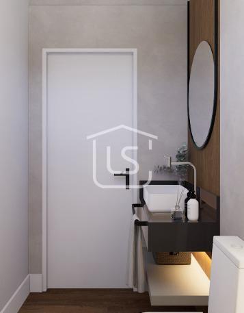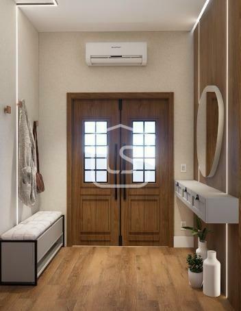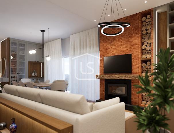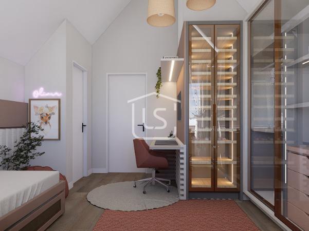 Os acabamentos de alto padrão estão presentes em cada detalhe: esquadrias em PVC com vidros duplos, garantindo isolamento térmico e acústico; piso aquecido em todos os ambientes do térreo e superior, proporcionando conforto em todas as estações; piso porcelanato retificado nas áreas sociais e escadas em madeira natural, que trazem um toque de aconchego e sofisticação. O forro em gesso com rebaixos delicados confere leveza e elegância à composição dos ambientes.