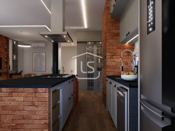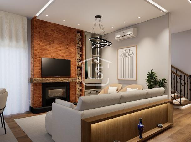 Com 245,13m² de área construída, distribuídos em três pavimentos, a residência encanta pela harmonia entre funcionalidade e sofisticação. No subsolo, há uma garagem coberta, banheiro de apoio e área de serviço com acesso independente. No pavimento térreo, os ambientes se integram de forma fluida, com uma ampla área social composta por estar com lareira, jantar e cozinha em conceito aberto, além de lavabo e uma suíte térrea que proporciona praticidade e conforto. No andar superior, a área íntima conta com uma espaçosa suíte master e mais uma suíte completa, ambas projetadas para garantir privacidade e conforto aos moradores.