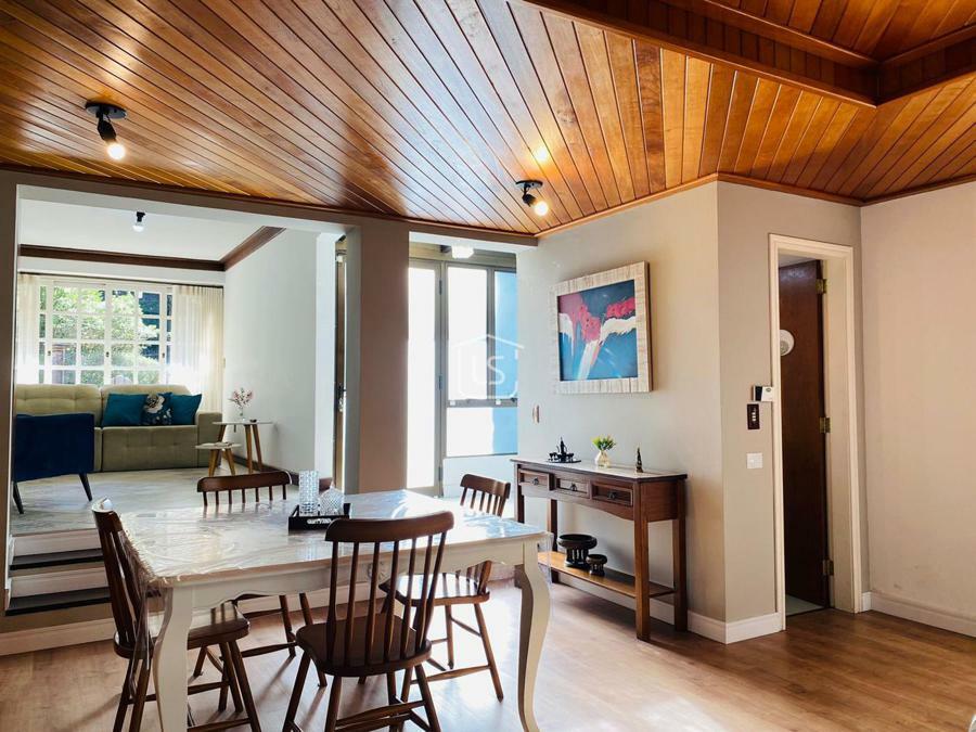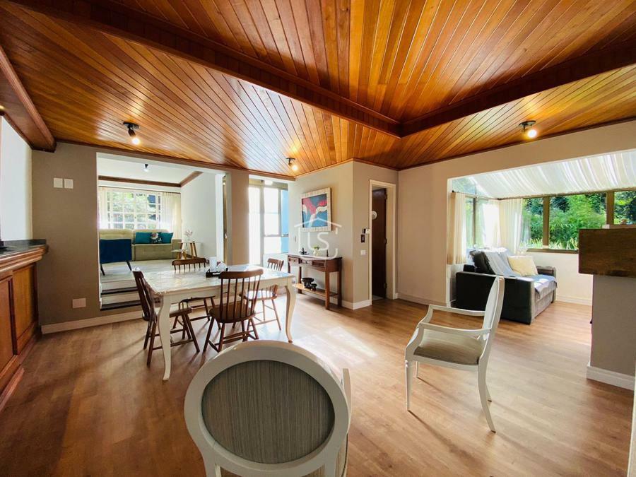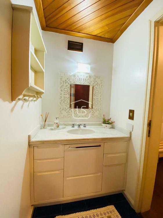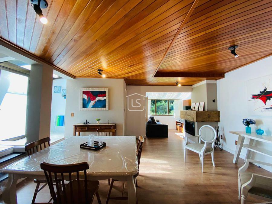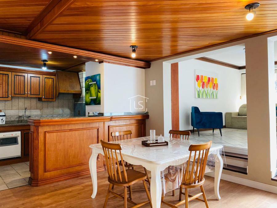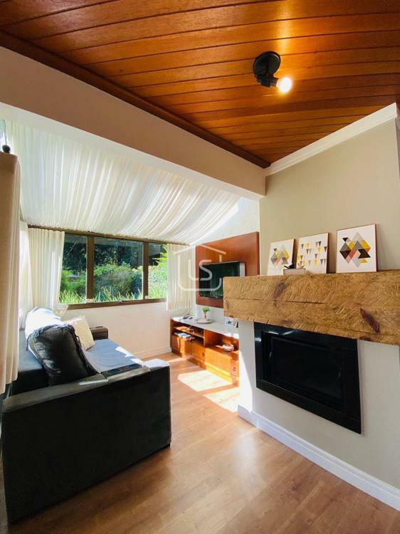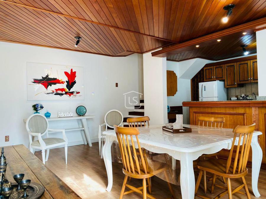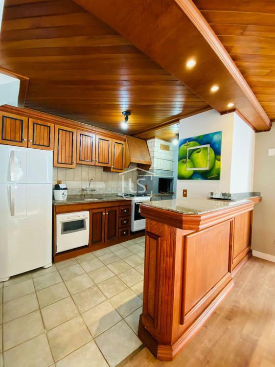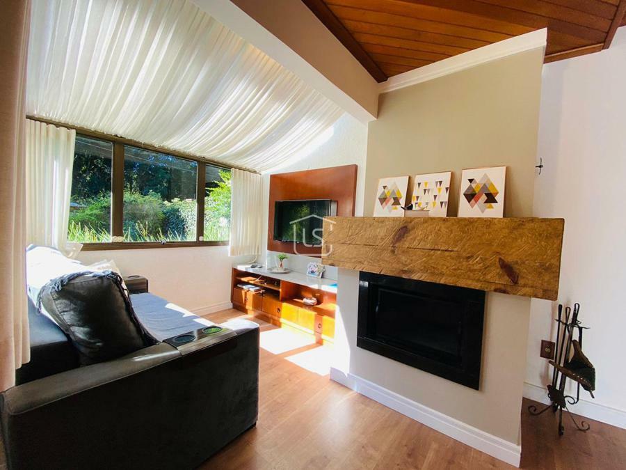 Totalmente mobiliada e equipada pronta para o uso, distribuída em hall de entrada, amplo living que integra duas salas de estar, sala de jantar com lareira e cozinha com churrasqueira, lavabo.