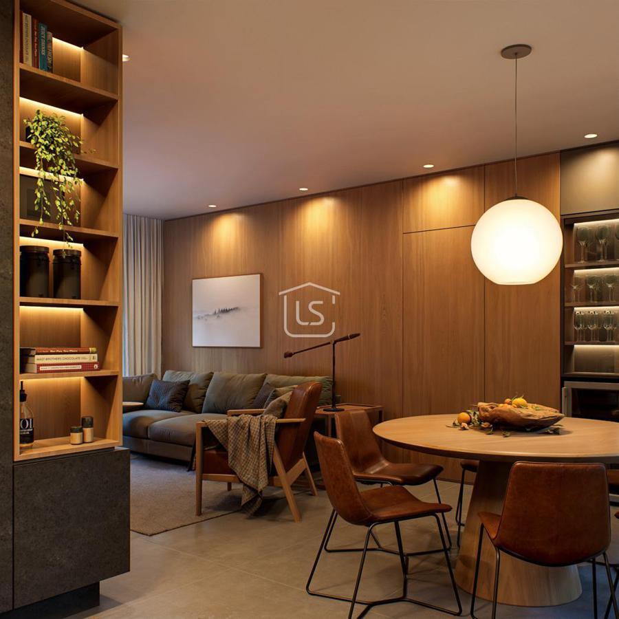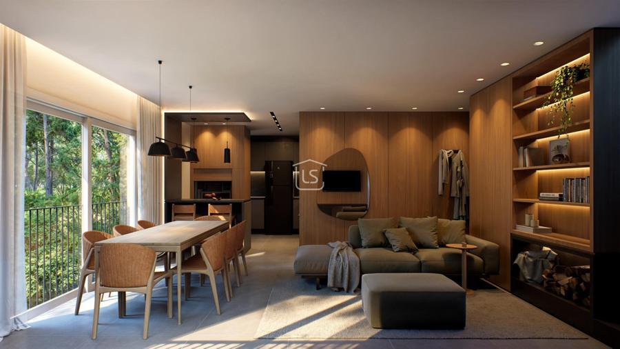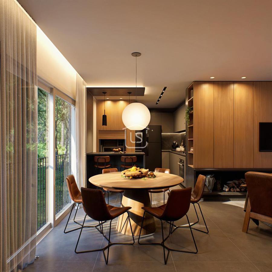 Composta por sala de estar com lareira, lavabo, cozinha com churrasqueira, lavanderia.