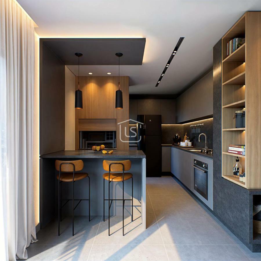 Composta por sala de estar com lareira, lavabo, cozinha com churrasqueira, lavanderia.