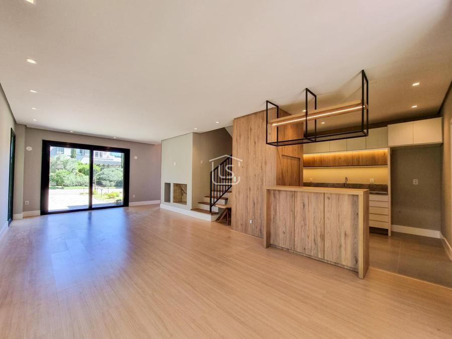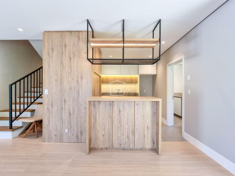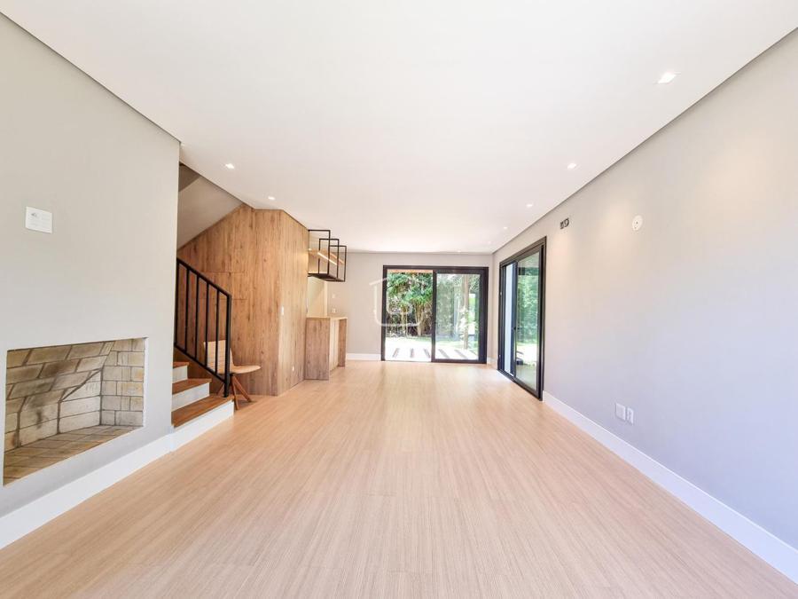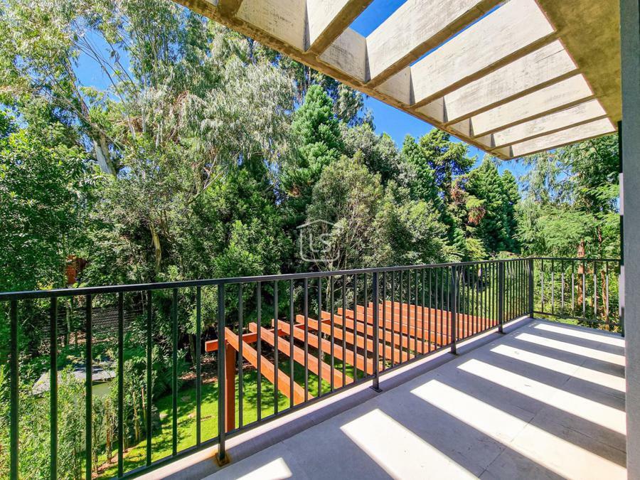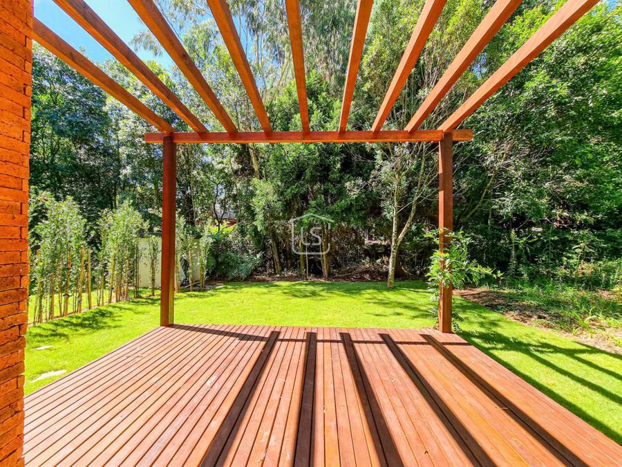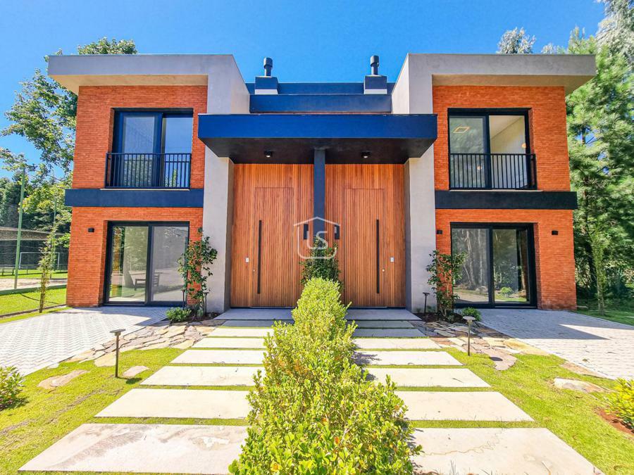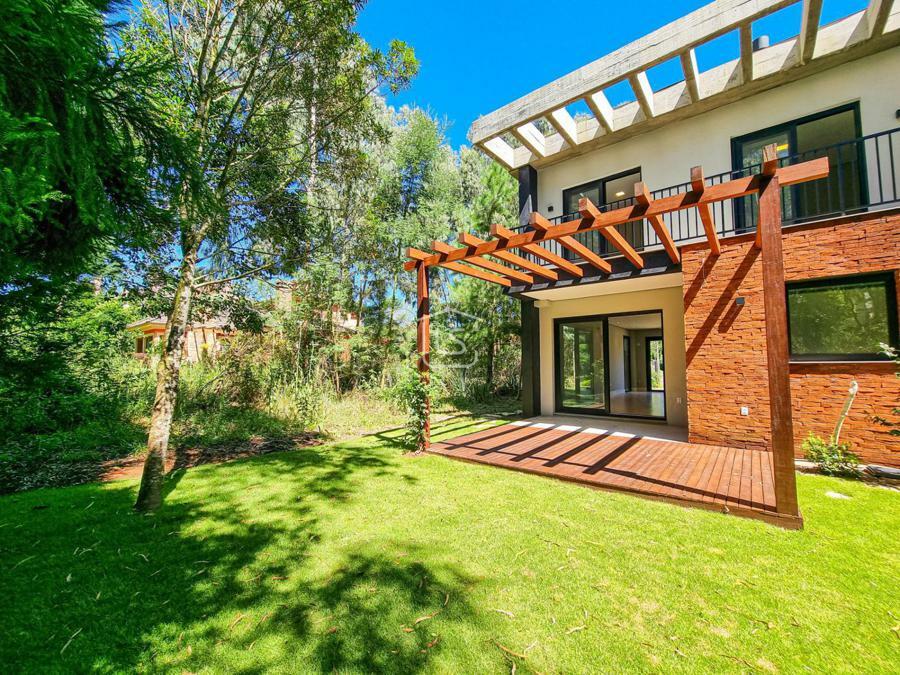 Bem distribuída em 3 dormitórios sendo 1 suíte e os dormitórios contam com ampla sacada e vista para o jardim. Living dois ambientes com lareira, cozinha americana com churrasqueira, área de serviço e varanda com pergolado. Lavabo e banho social no segundo pavimento.