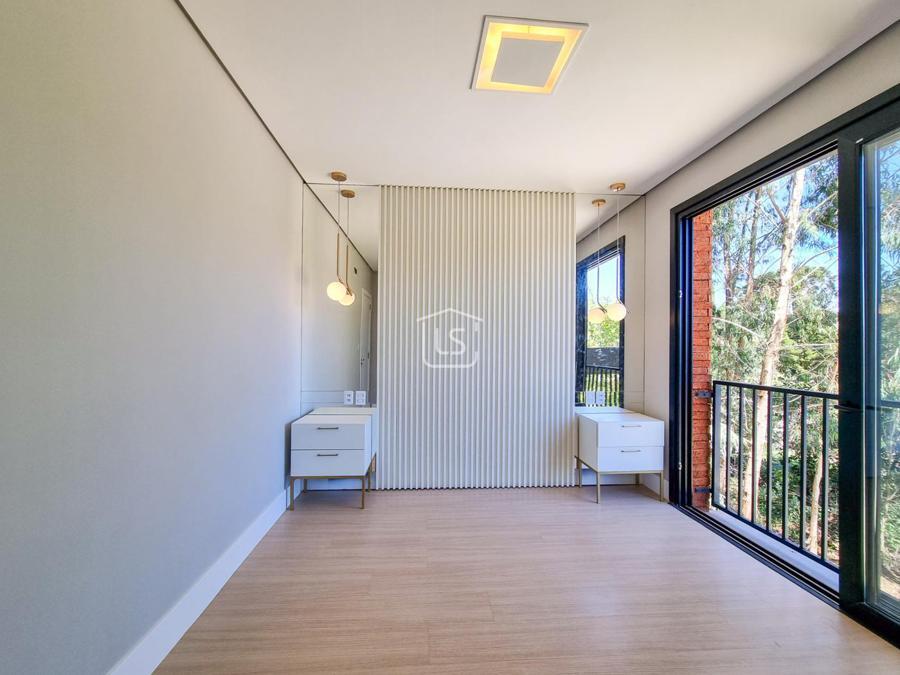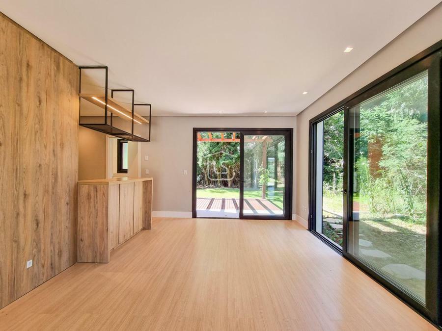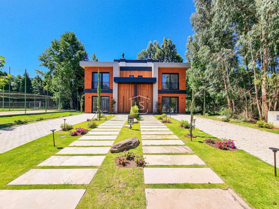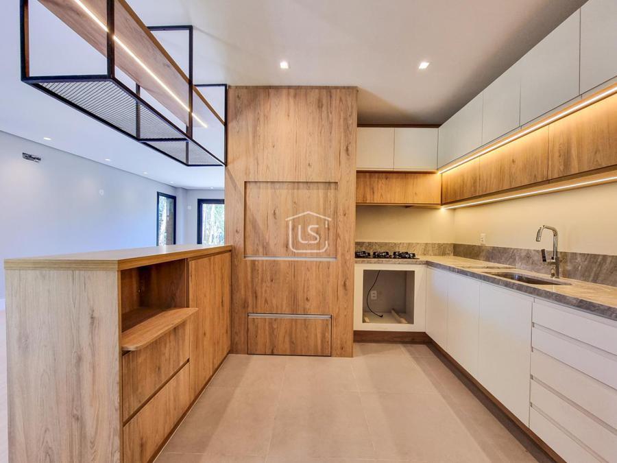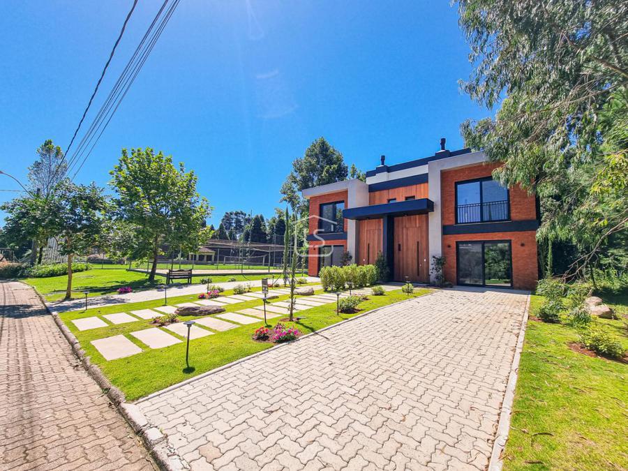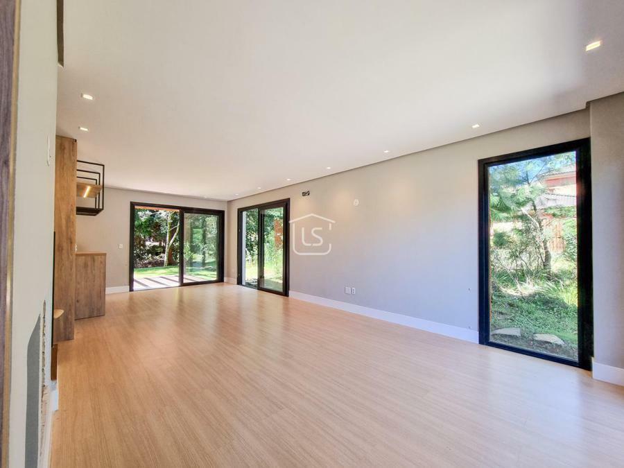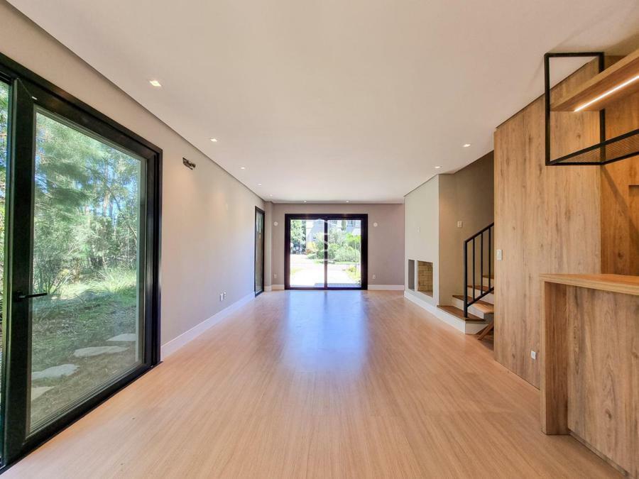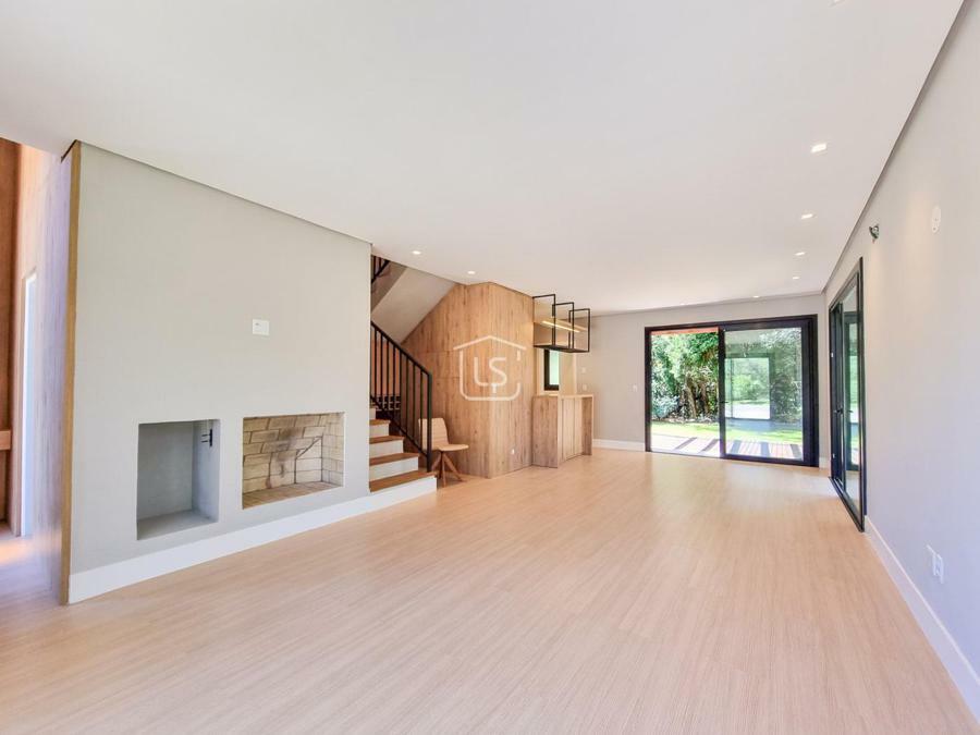 Bem distribuída em 3 dormitórios sendo 1 suíte e os dormitórios contam com ampla sacada e vista para o jardim. Living dois ambientes com lareira, cozinha americana com churrasqueira, área de serviço e varanda com pergolado. Lavabo e banho social no segundo pavimento.