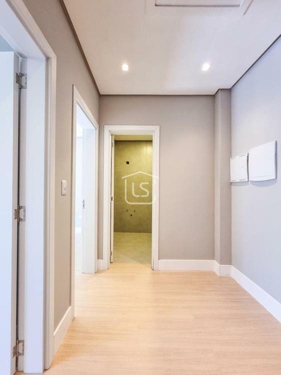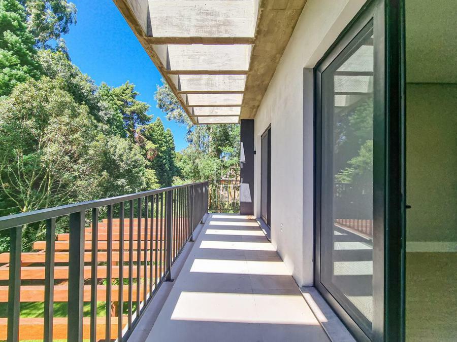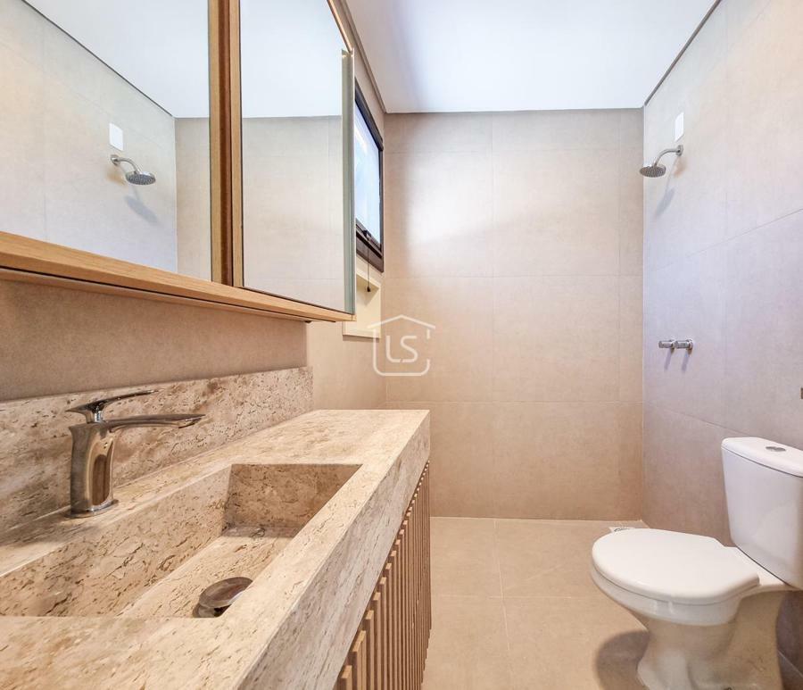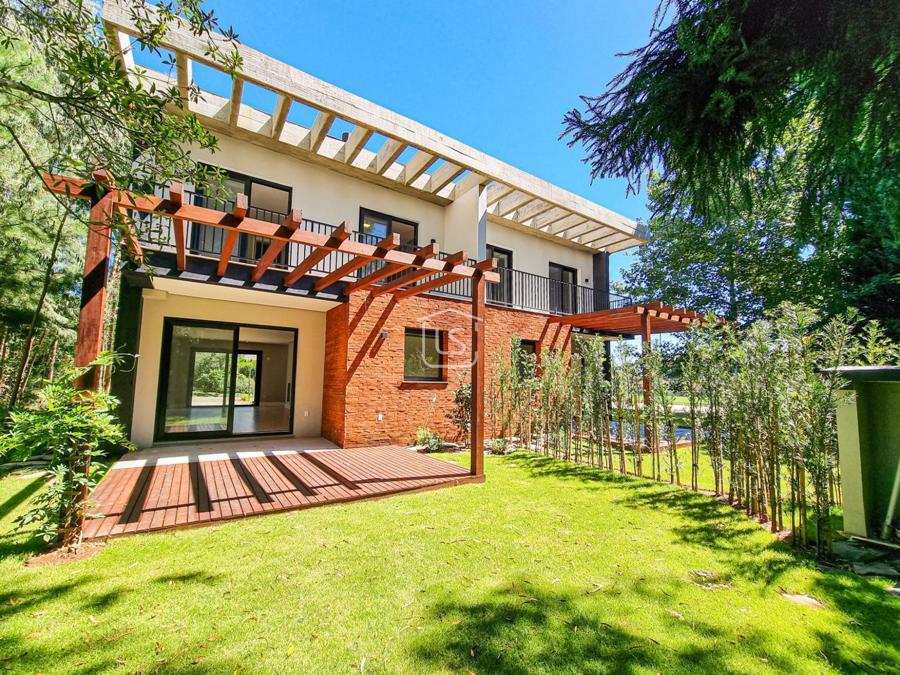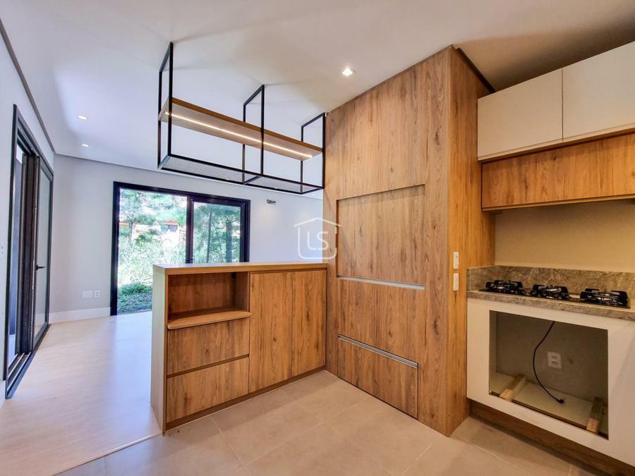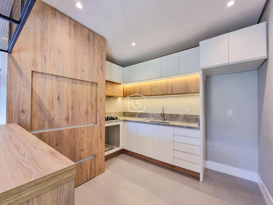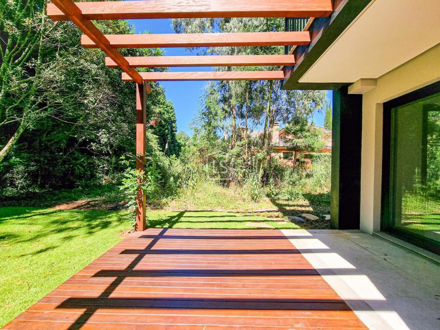 Bem distribuída em 3 dormitórios sendo 1 suíte e os dormitórios contam com ampla sacada e vista para o jardim. Living dois ambientes com lareira, cozinha americana com churrasqueira, área de serviço e varanda com pergolado. Lavabo e banho social no segundo pavimento.