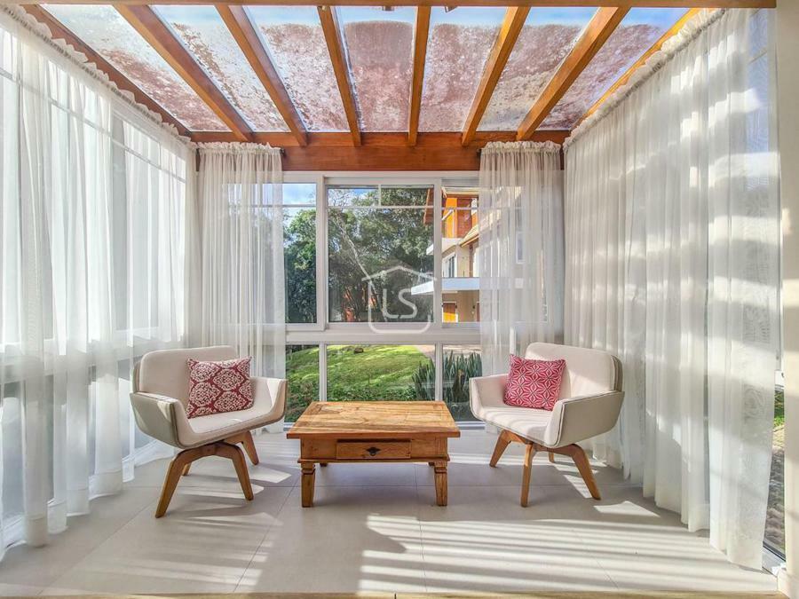 Casa em Condomínio Fechado no centro de Gramado!Belíssima casa estilo Toscana, bem distribuída em 3 suítes, amplo living e um solarium integrado, sala de estar com sacada, cozinha ampla, estilo americana com bancada, 2 lavabos, um cômodo que pode ser utilizado como dormitório ou escritório, lavanderia. Área gourmet com churrasqueira e fogão campeiro, depósito e garagem fechada para 2 carros.Água quente instalada.