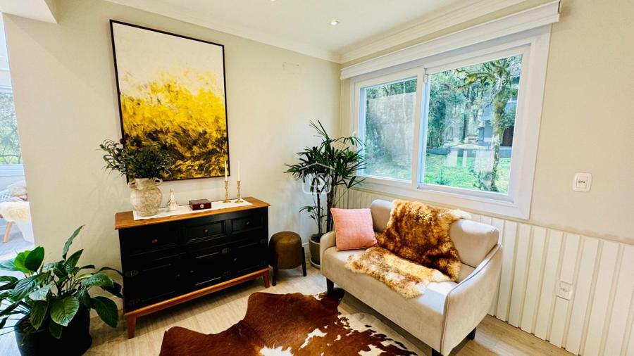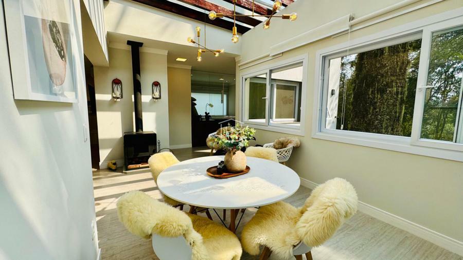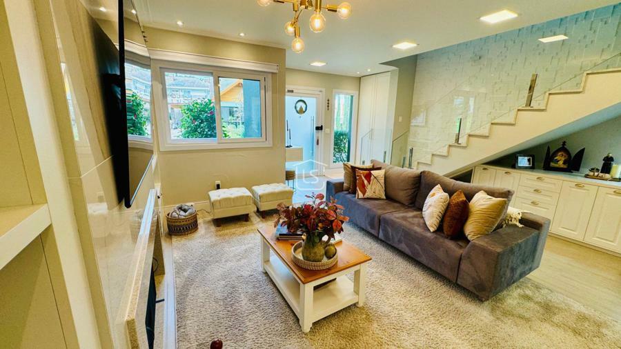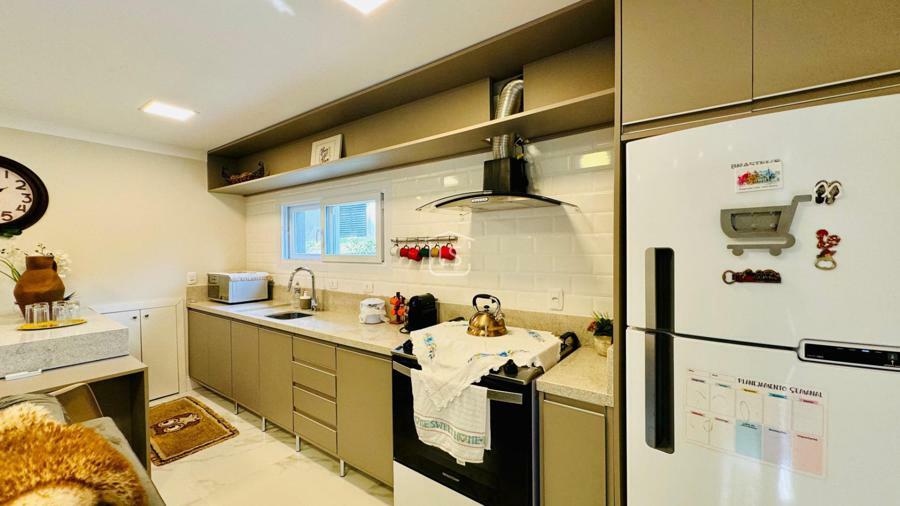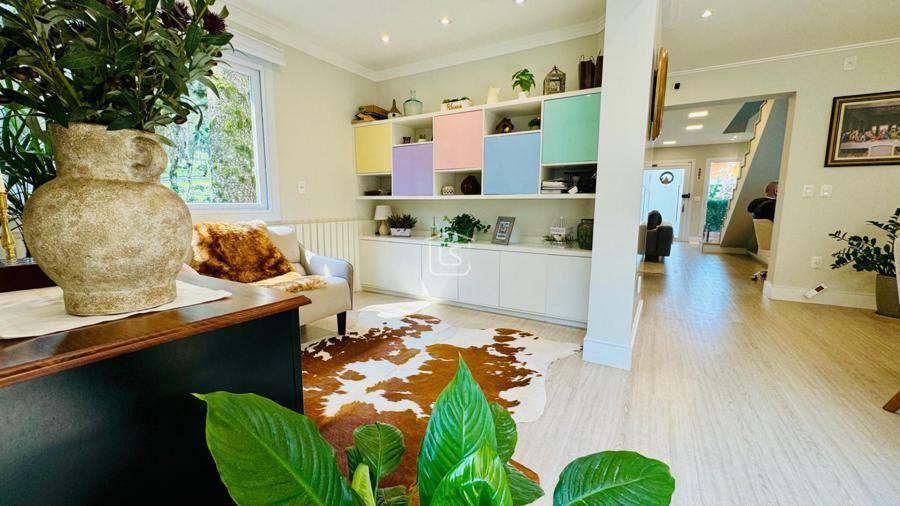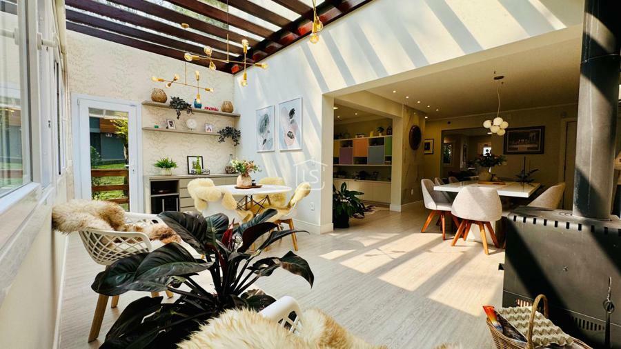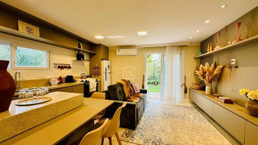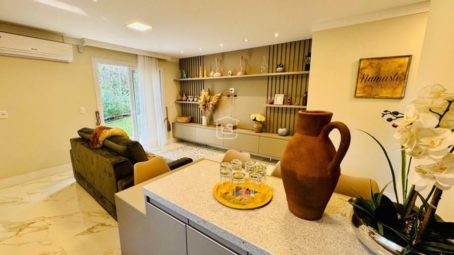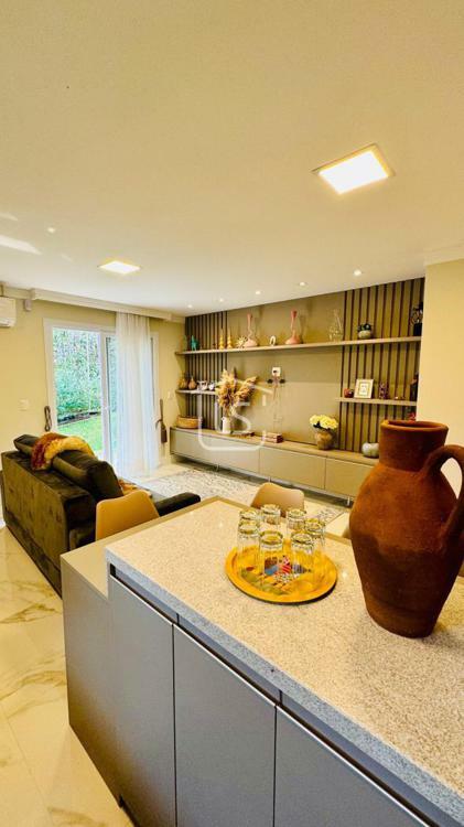 Residência mobiliada e equipada, localizada junto a infraestrutura do condomínio, distribuída em 4 dormitórios, sendo 2 suítes, living com lareira, cozinha americana com ilha e churrasqueira, lavabo, brinquedoteca, pergolado com área de convivência e hidro, lavanderia, split e água quente instalados, garagem em frente a casa, anexo abaixo da casa composto por esta/cozinha e uma suíte.