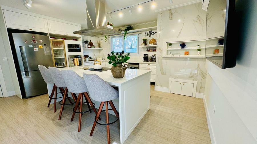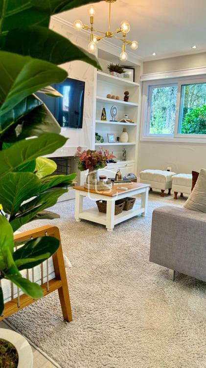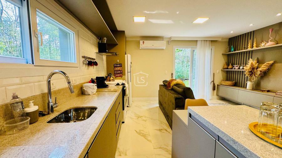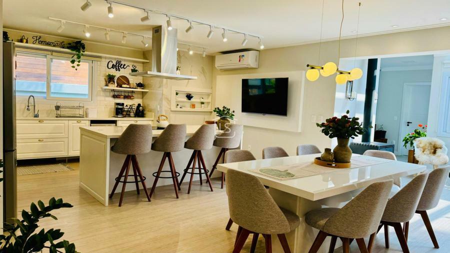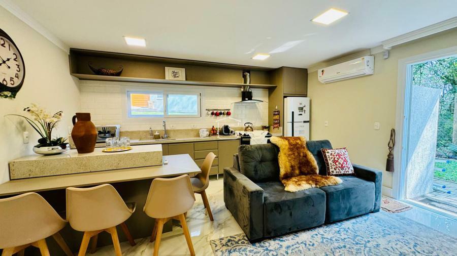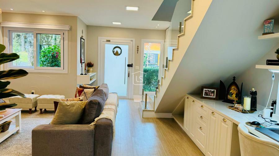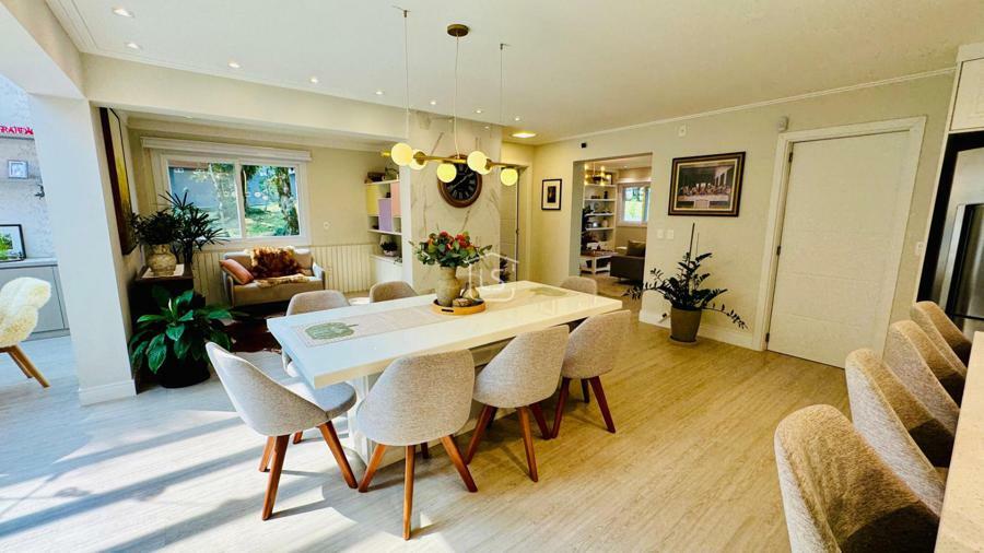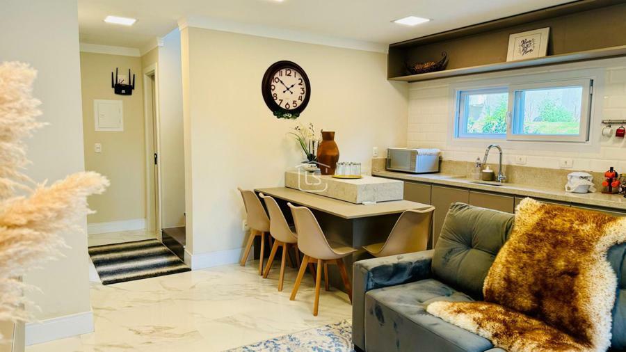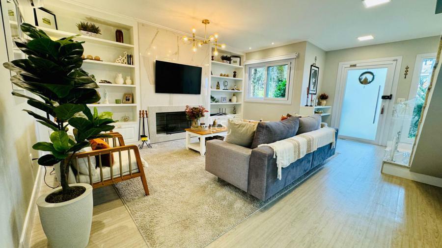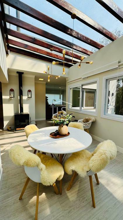 Residência mobiliada e equipada, localizada junto a infraestrutura do condomínio, distribuída em 4 dormitórios, sendo 2 suítes, living com lareira, cozinha americana com ilha e churrasqueira, lavabo, brinquedoteca, pergolado com área de convivência e hidro, lavanderia, split e água quente instalados, garagem em frente a casa, anexo abaixo da casa composto por esta/cozinha e uma suíte.