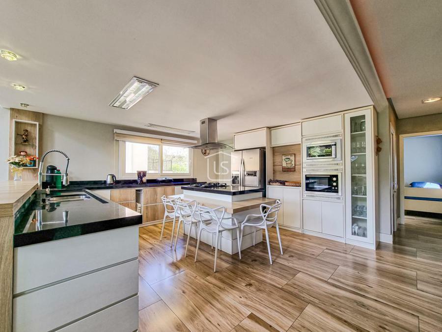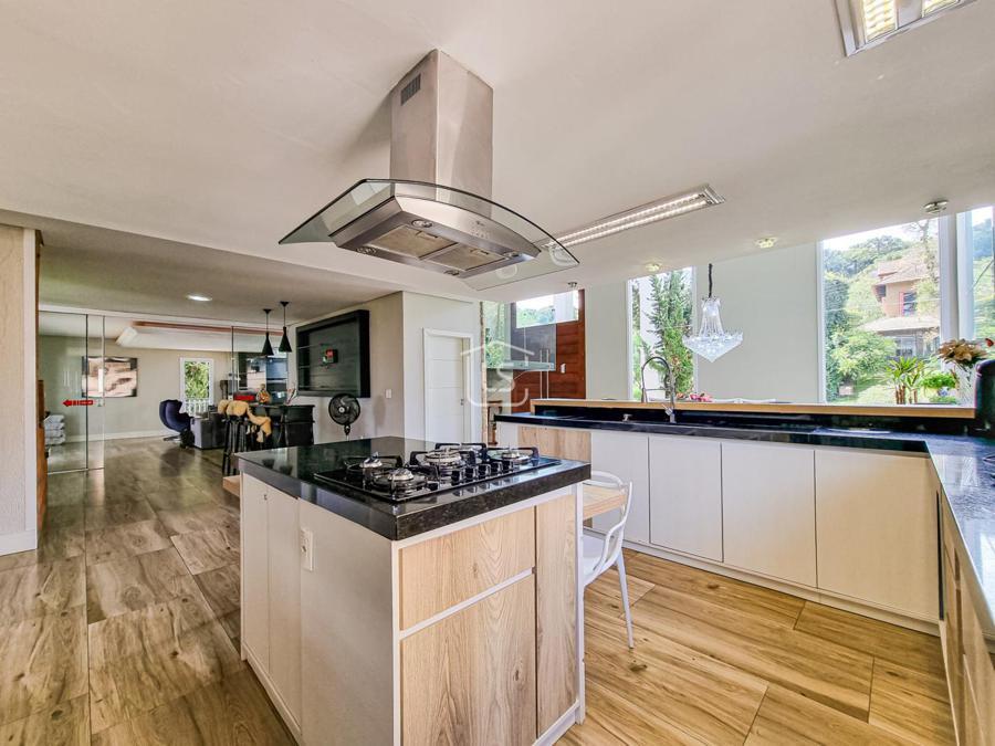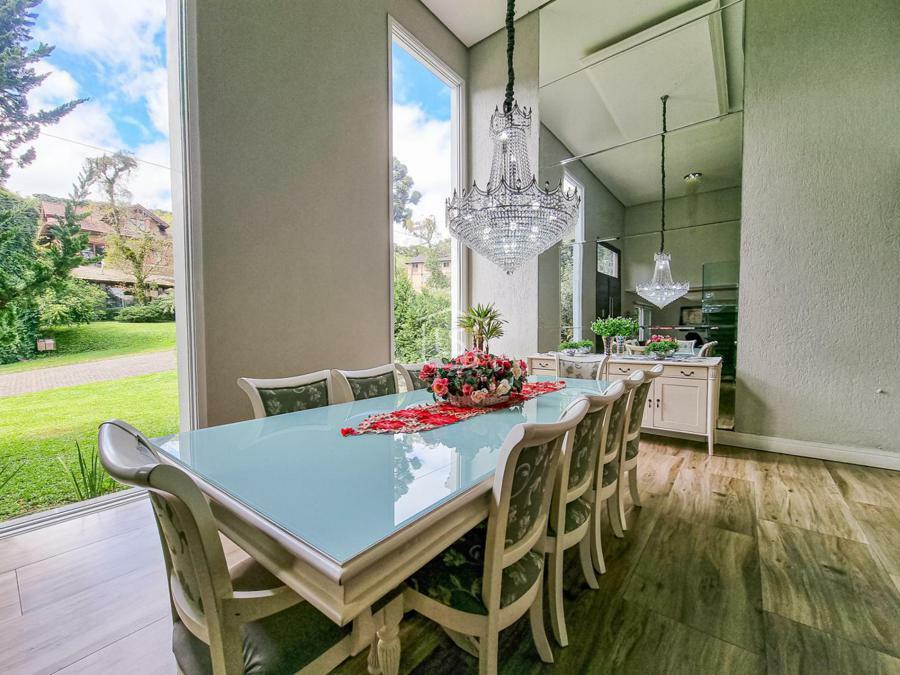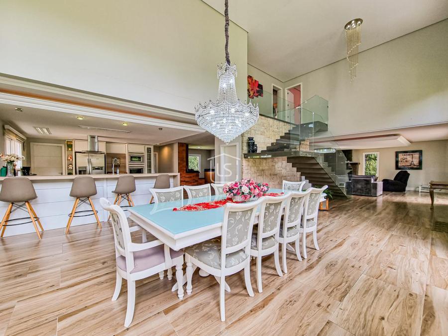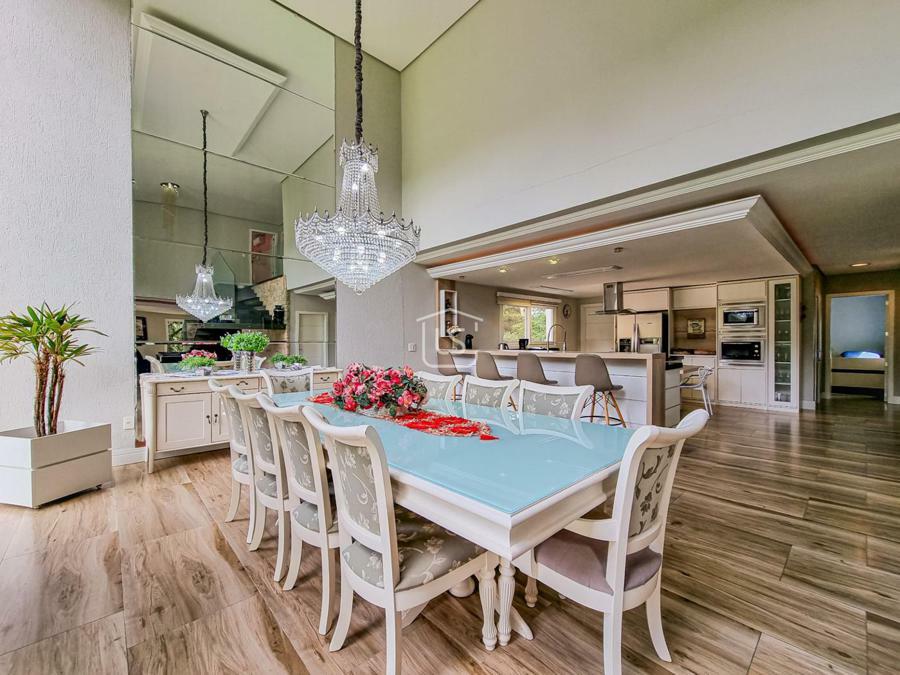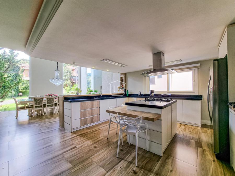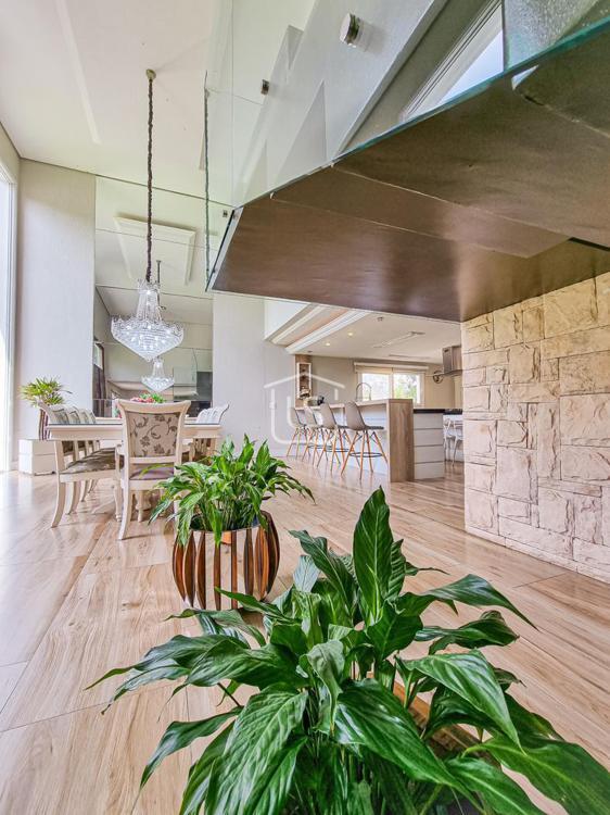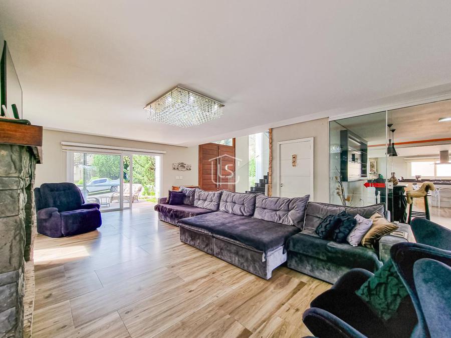 Sala de estar com lareira, sala de jantar, cozinha americana, espaço gourmet com churrasqueira e fogão campeiro. Lavabo e lavanderia separada.