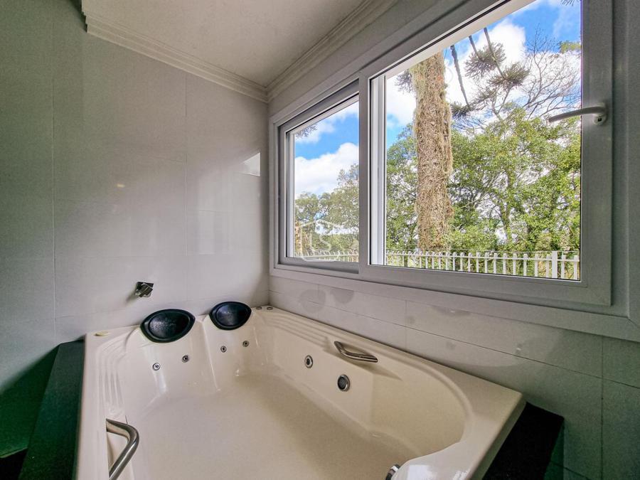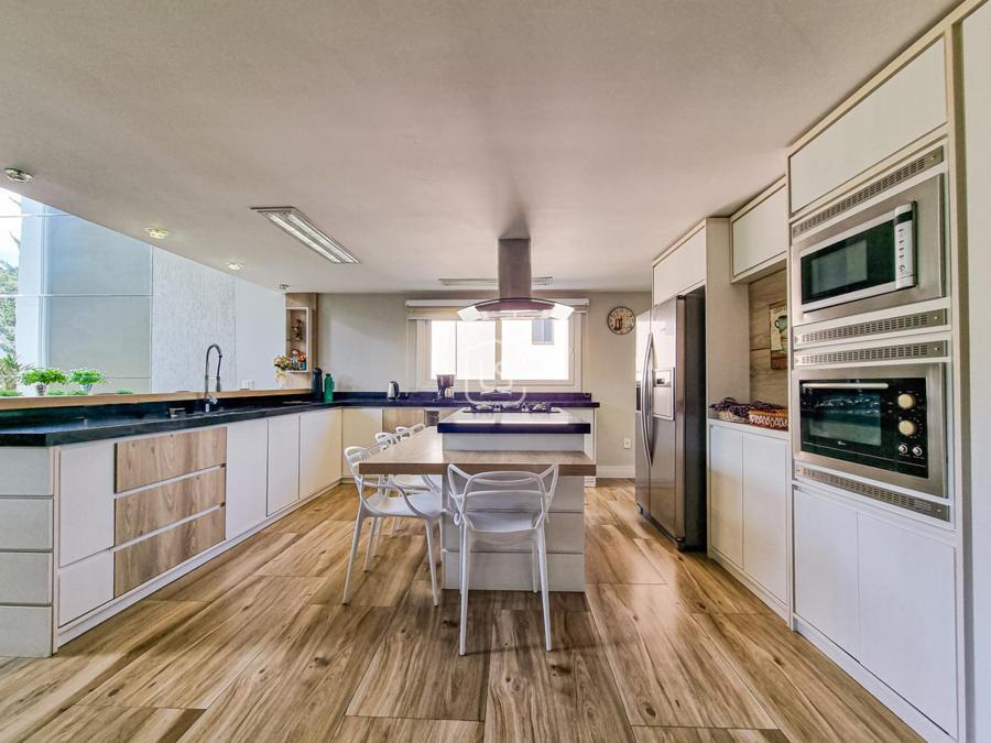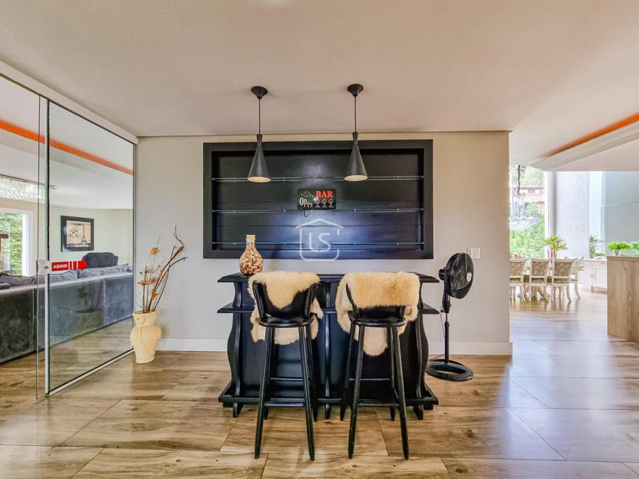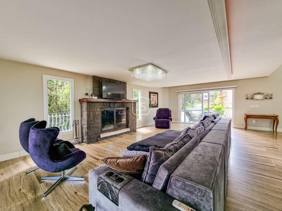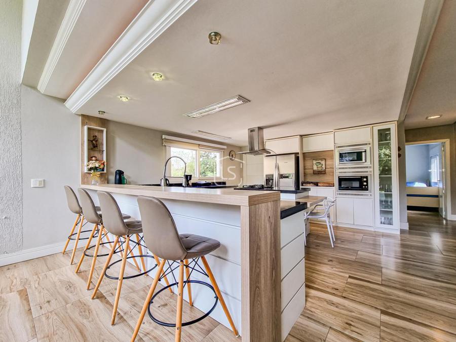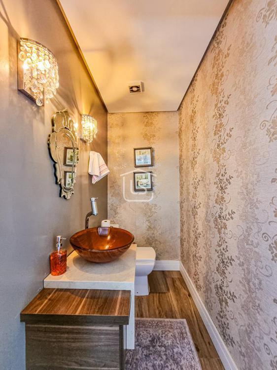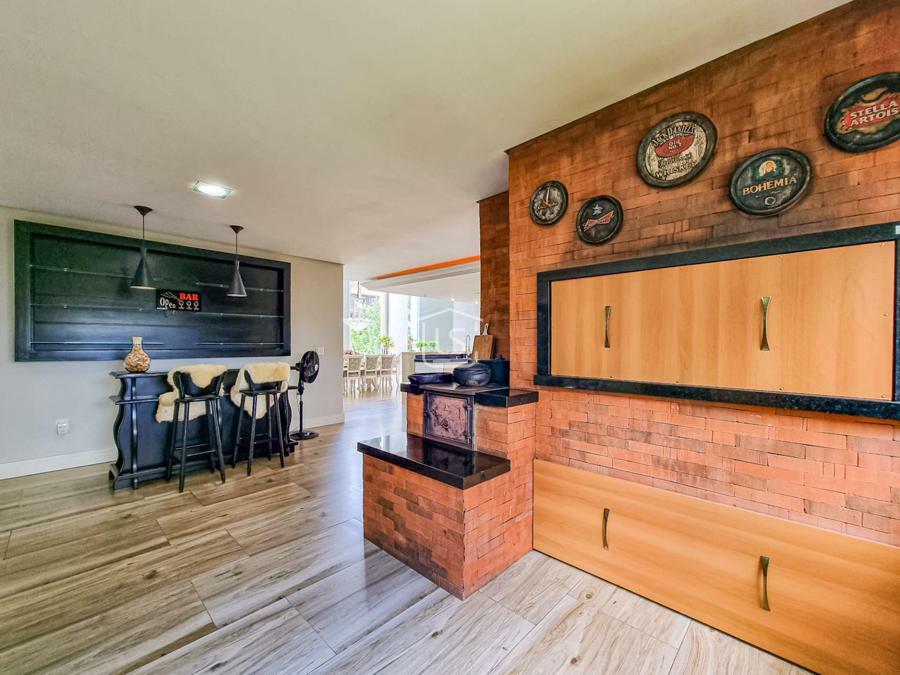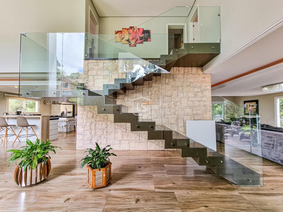 Sala de estar com lareira, sala de jantar, cozinha americana, espaço gourmet com churrasqueira e fogão campeiro. Lavabo e lavanderia separada.