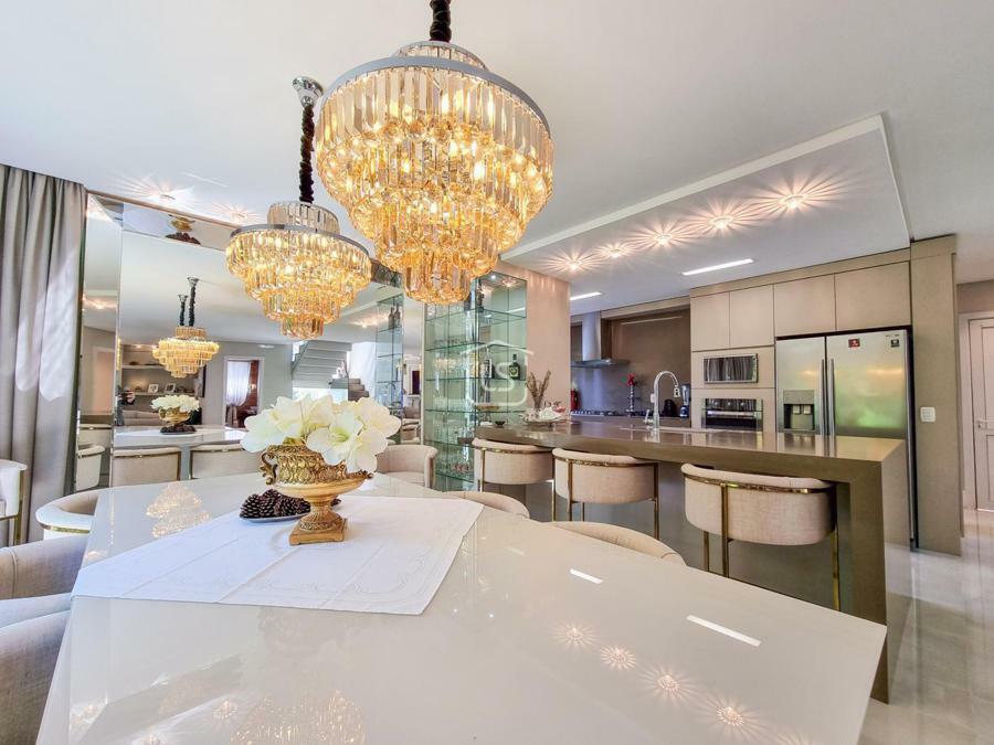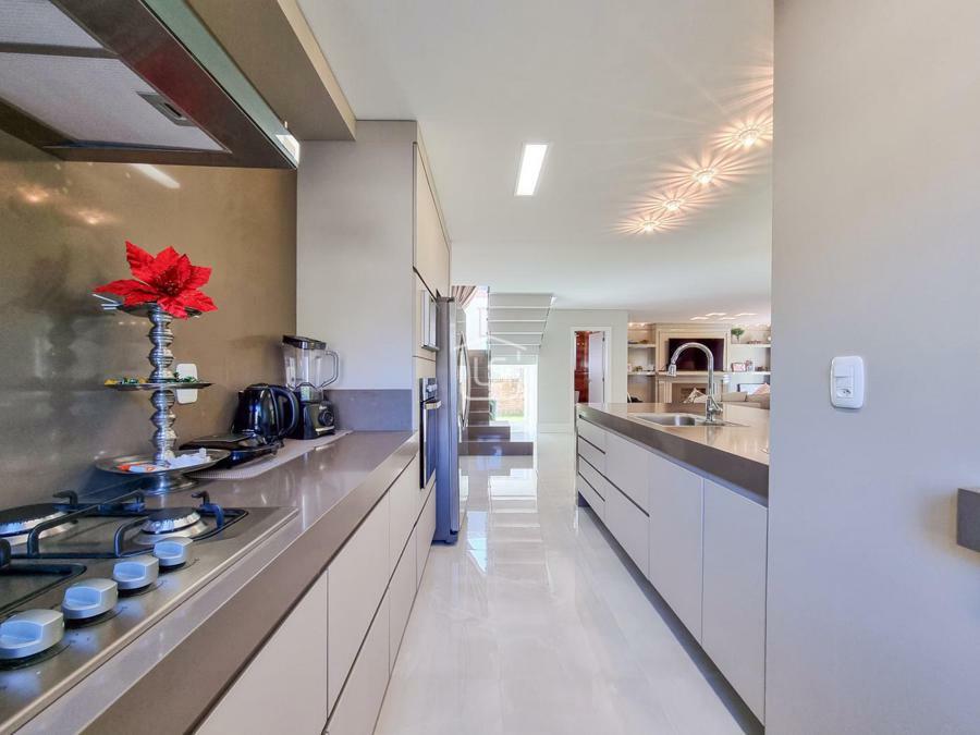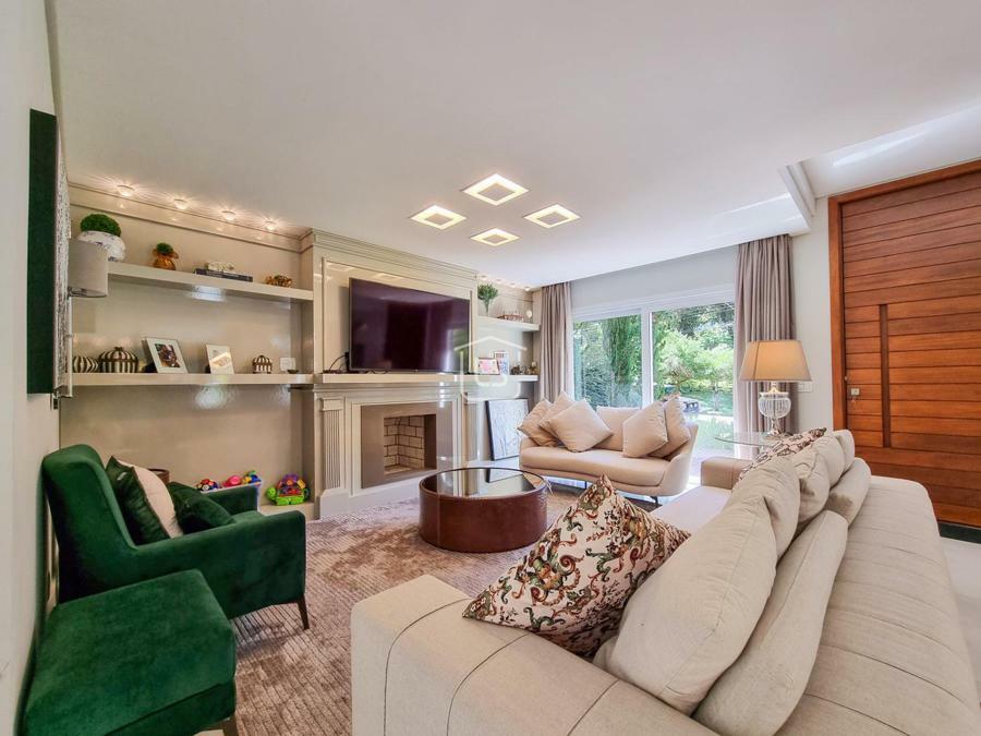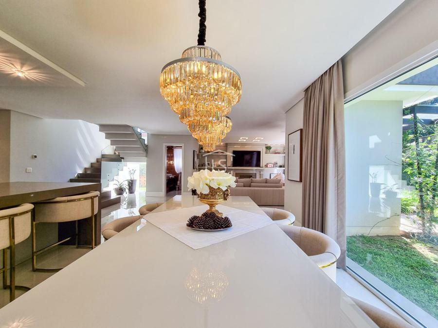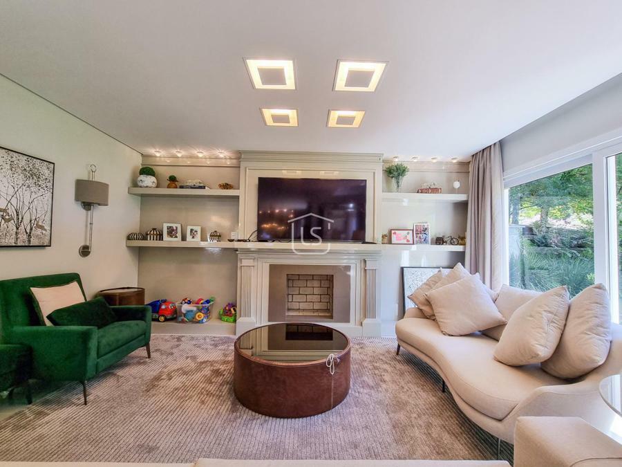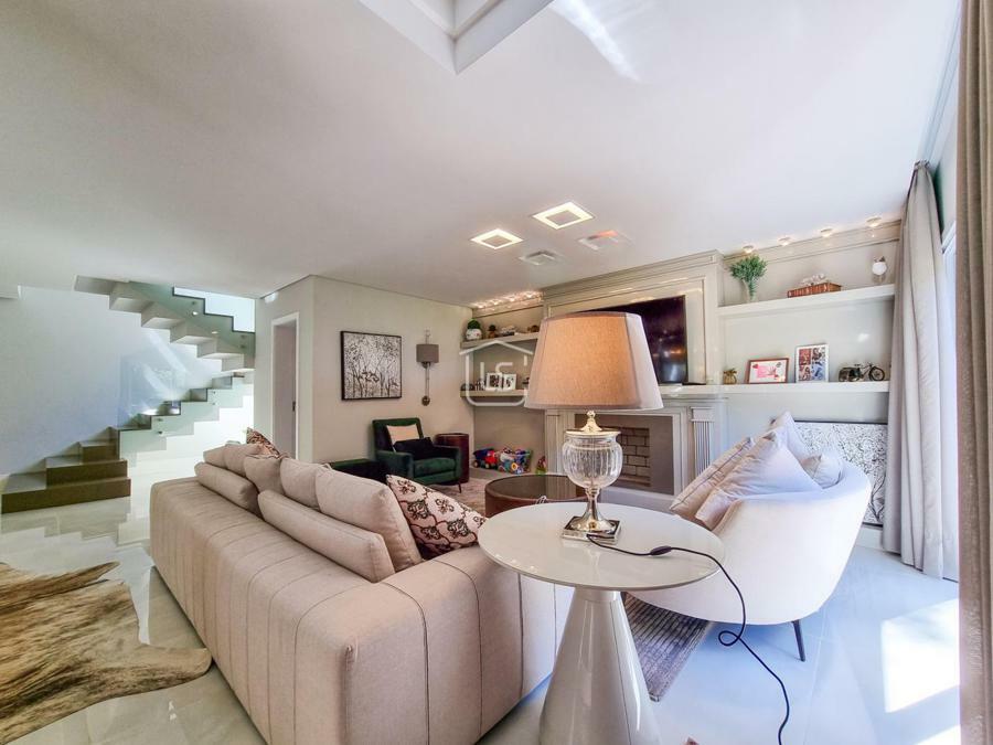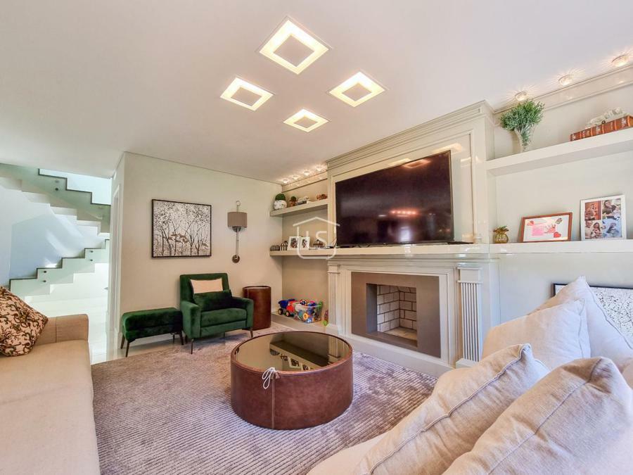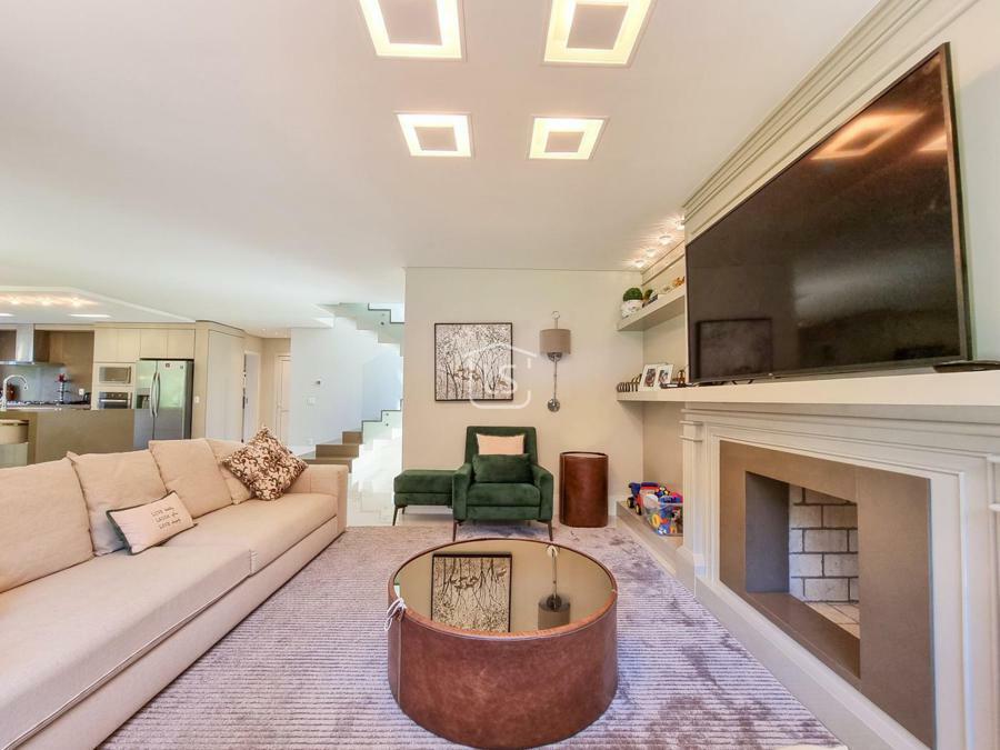Sala de estar com lareira, sala de jantar e cozinha em conceito aberto com churrasqueira. Área de serviço separada e lavabo. 2 vagas de garagem, água quente e split instalados.