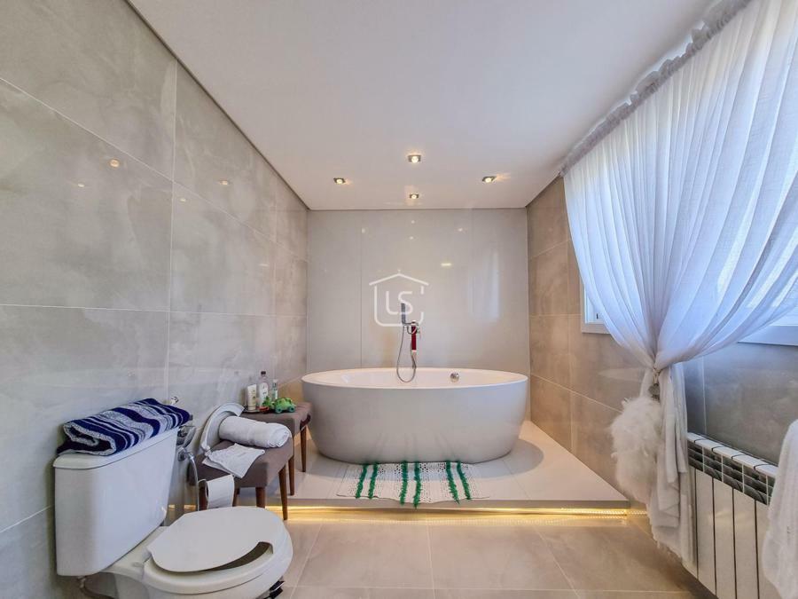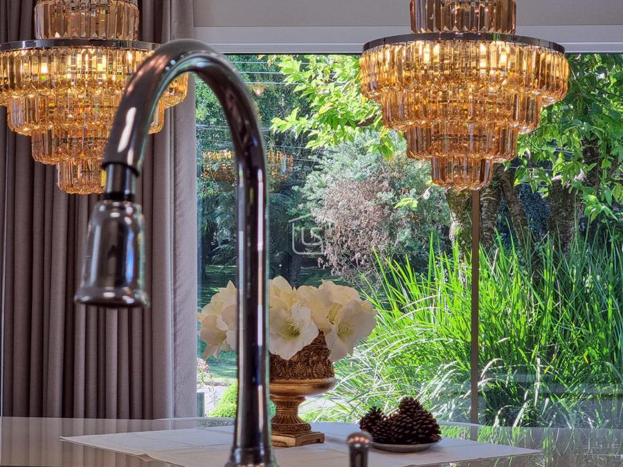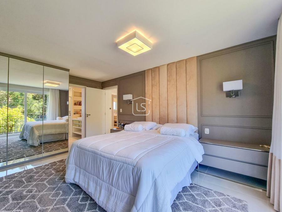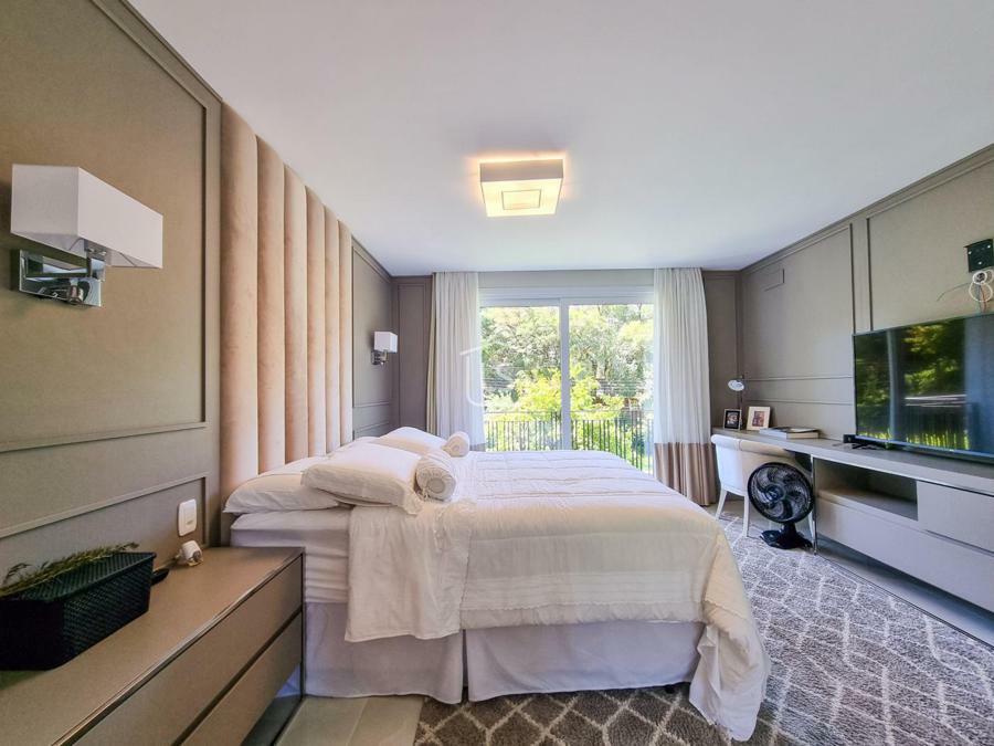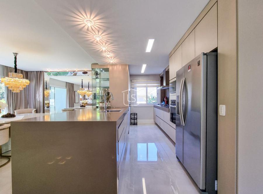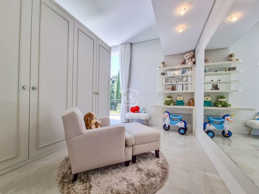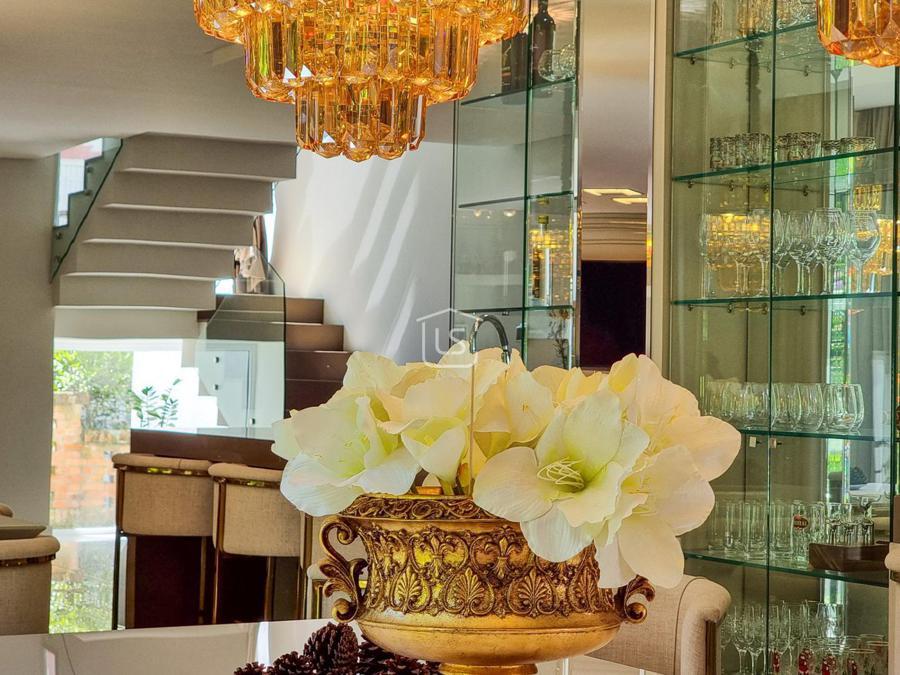 Distribuída em 4 suítes amplas, sendo uma delas no térreo, uma máster com banheira de hidromassagem e sacada e outra com closet e sacada.