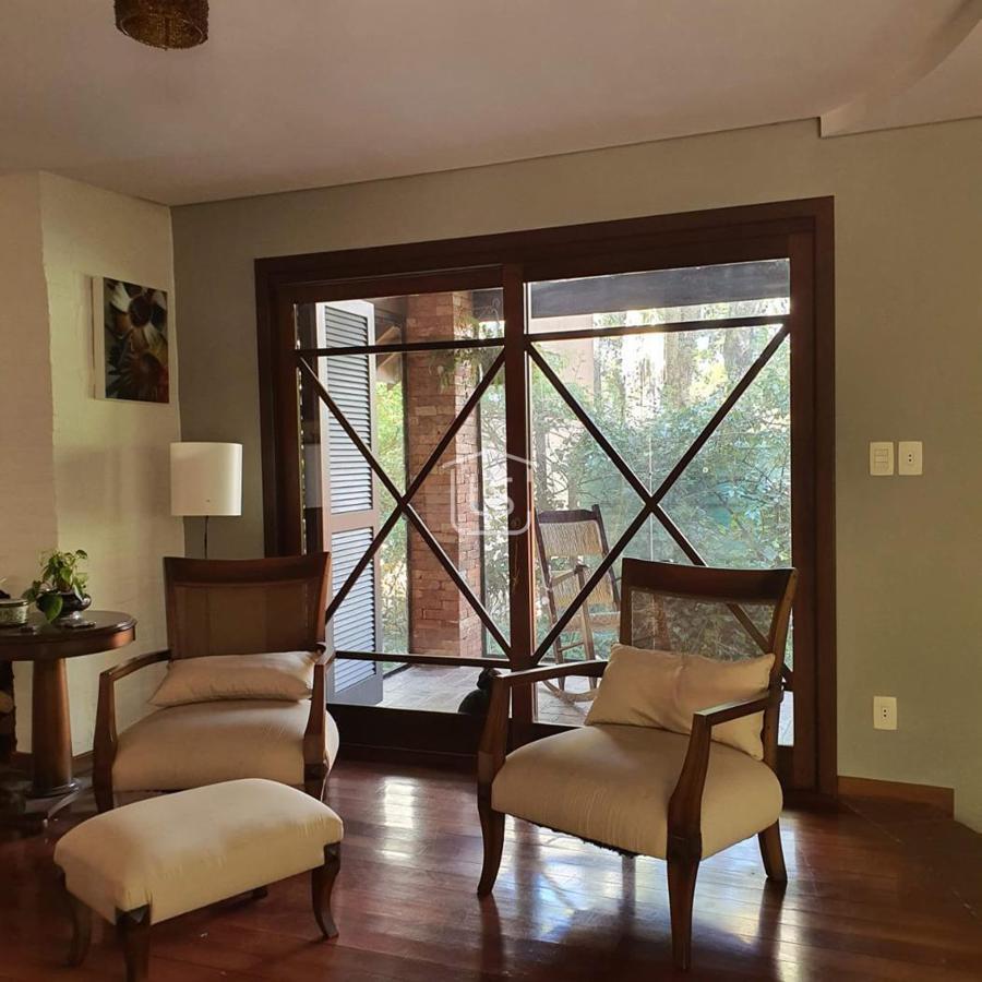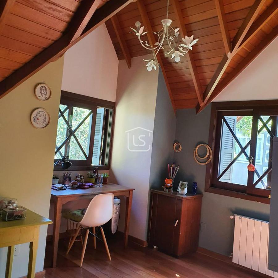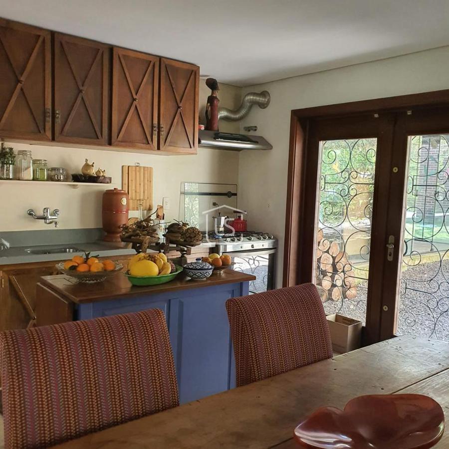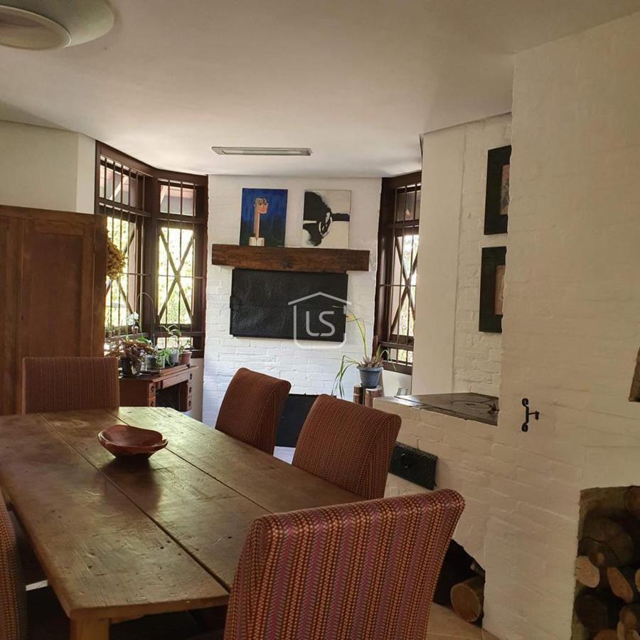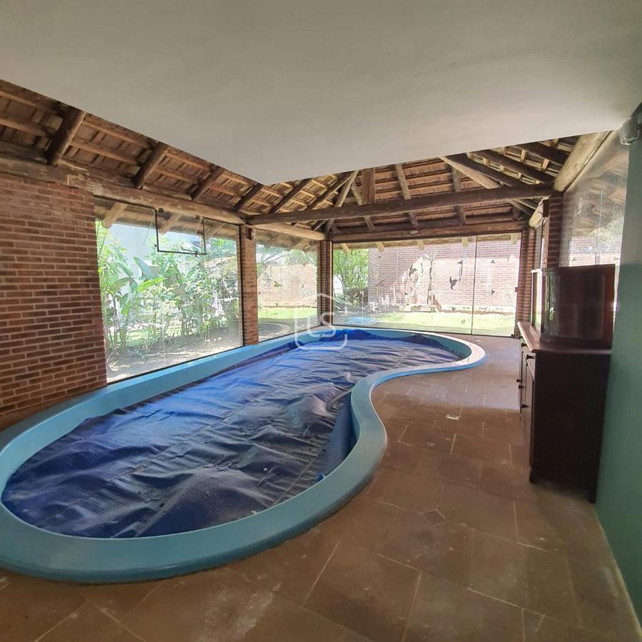 Distribuída em 4 dormitórios sendo 3 suítes, hall de entrada, sala de estar com lareira espanhola, sala de jantar, lavabo, cozinha com forno de pizza, churrasqueira e fogão campeiro. Lateral da casa envidraçada, espaço com piscina coberta aquecida.