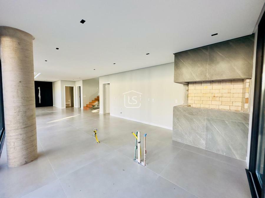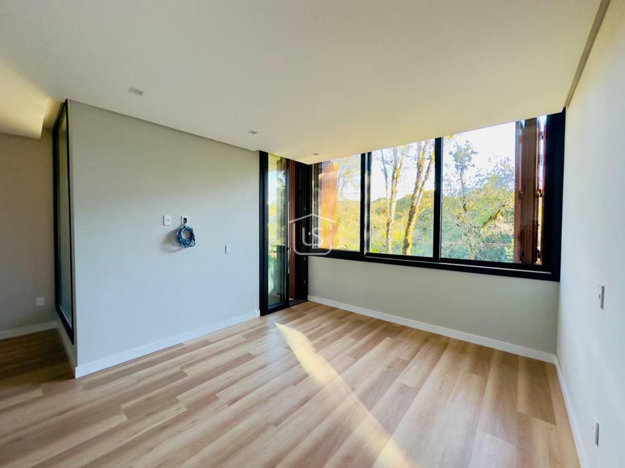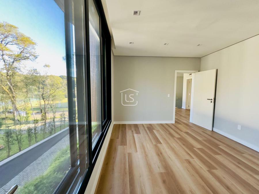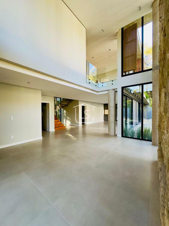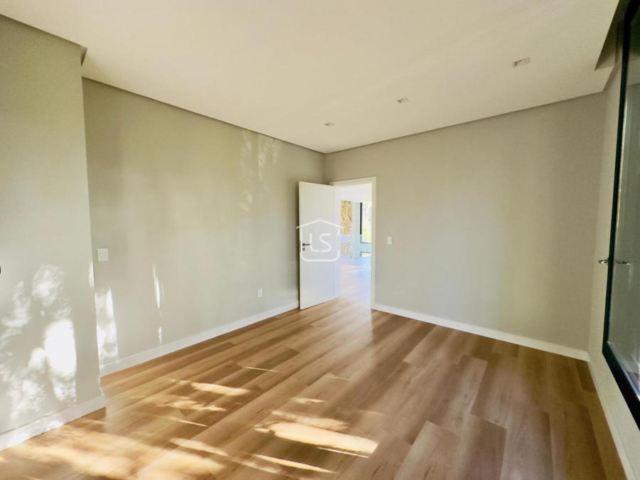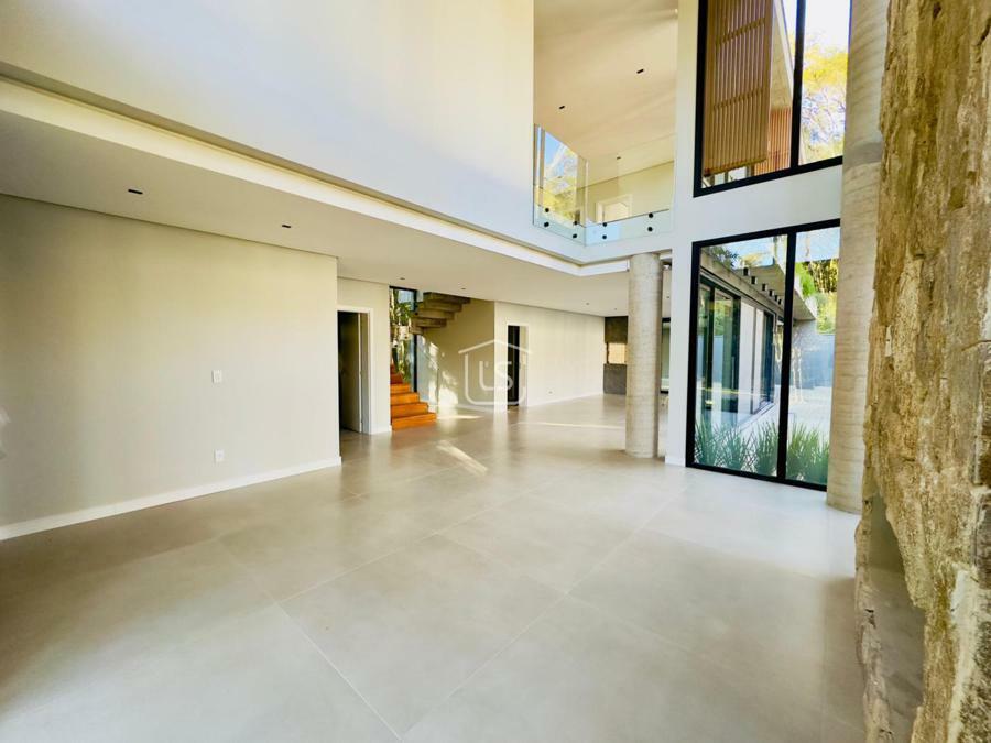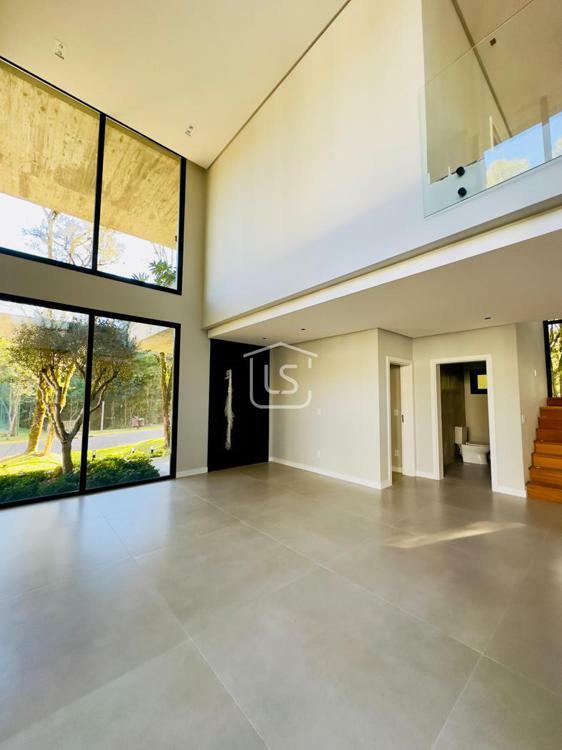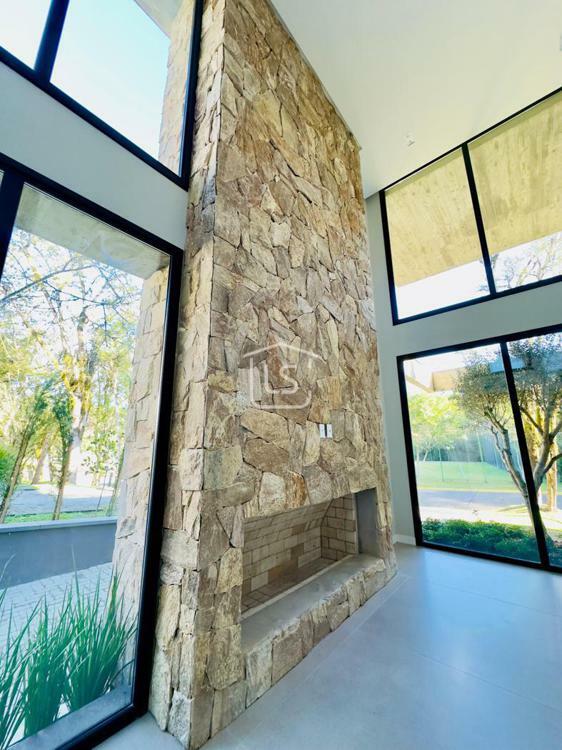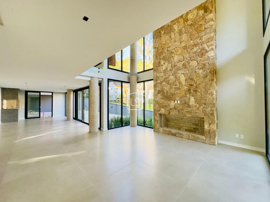 Bem distribuída em 4 amplas suítes, sendo uma térrea e outra máster, uma amplo living com lareira e pé direito duplo, cozinha gourmet com churrasqueira, lavabo, área íntima na parte superior, home office, despensa, área de serviço, esperas para split, calefação, água quente, porcelanato e piso vinílico, esperas para piso aquecido nos banhos, esquadrias em PVC preto com vidros duplos, painéis ripados em alumínio, forro gesso, e garagem para dois carros. Terreno plano e de frente para a infraestrutura de lazer do condomínio.