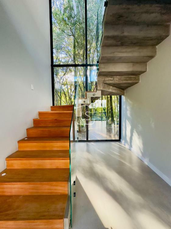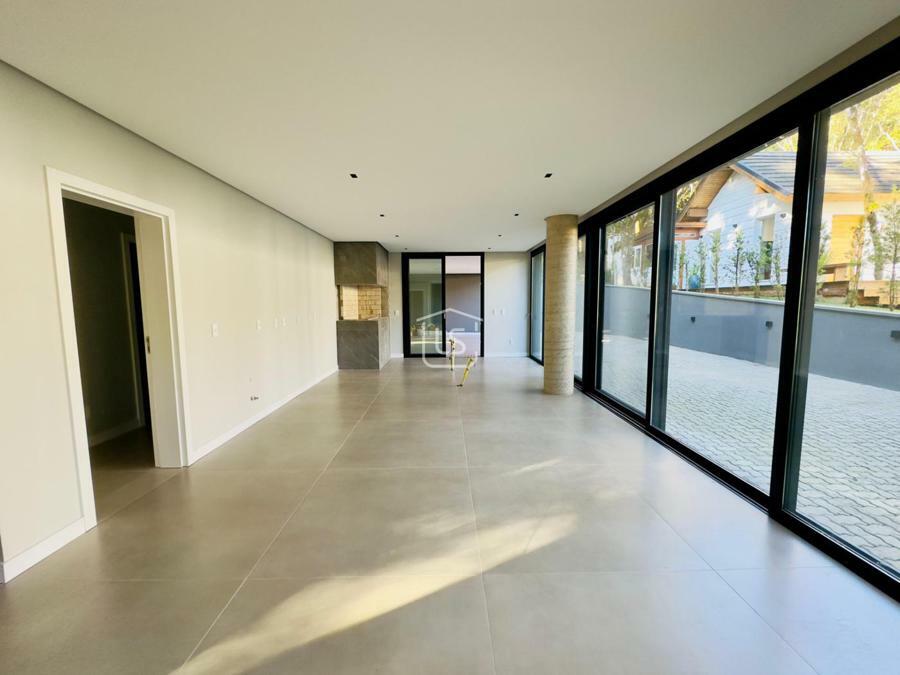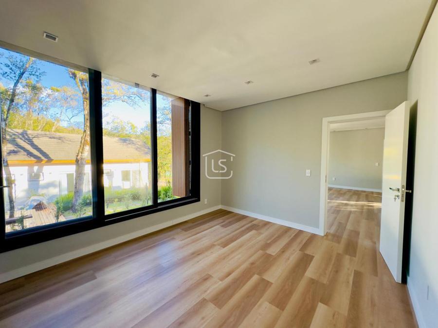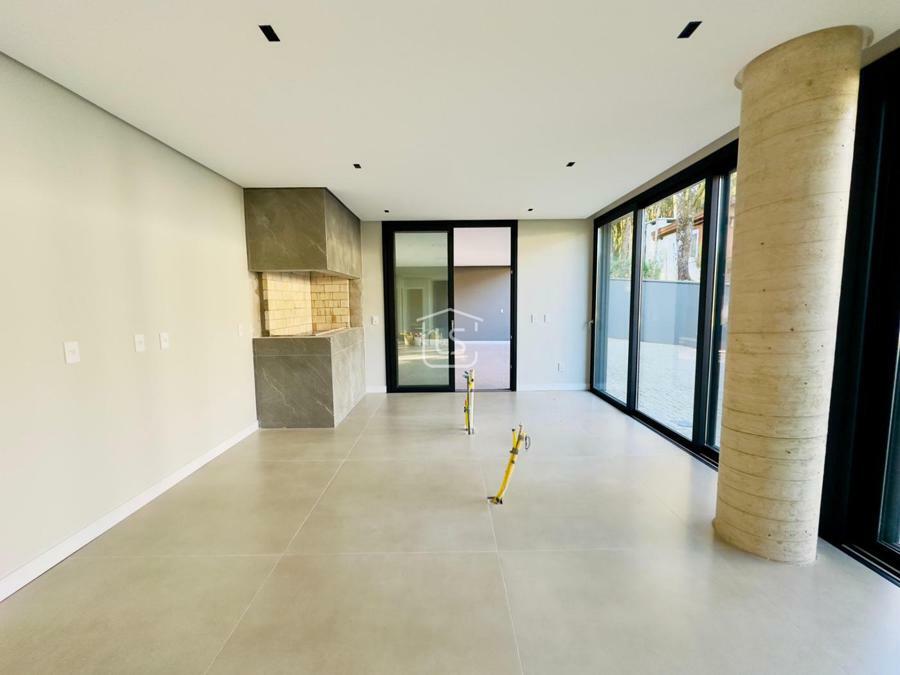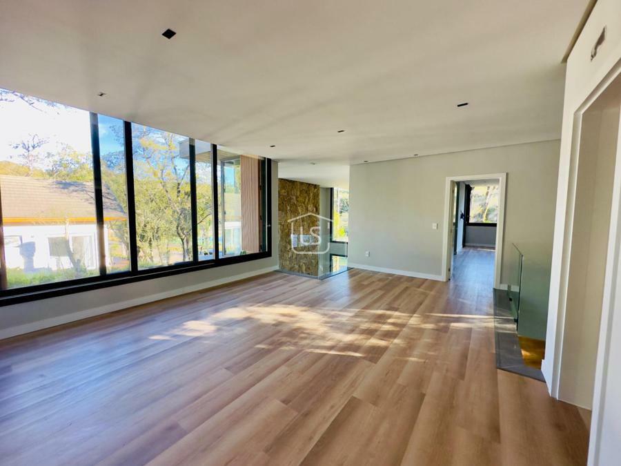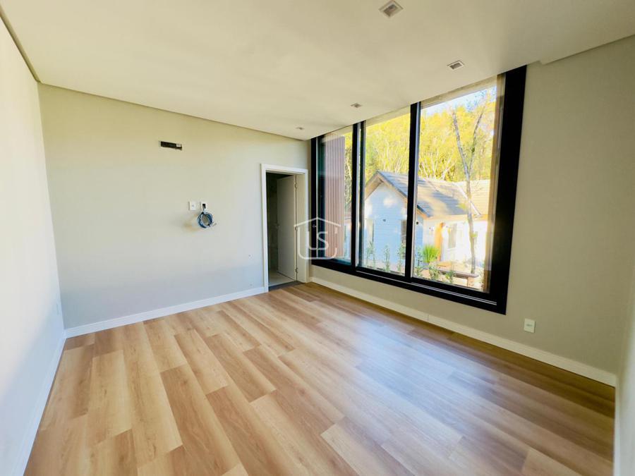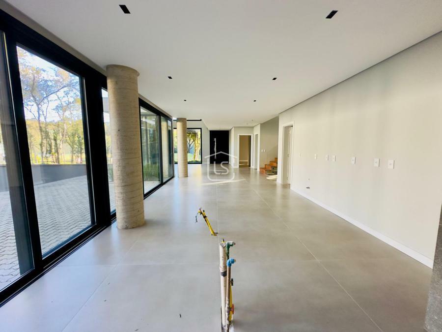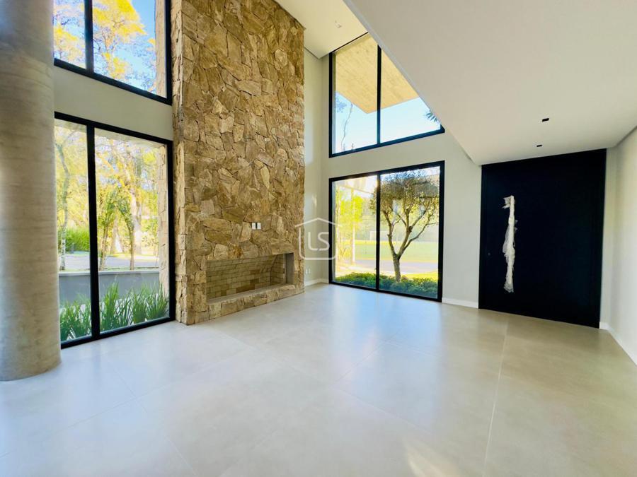 Bem distribuída em 4 amplas suítes, sendo uma térrea e outra máster, uma amplo living com lareira e pé direito duplo, cozinha gourmet com churrasqueira, lavabo, área íntima na parte superior, home office, despensa, área de serviço, esperas para split, calefação, água quente, porcelanato e piso vinílico, esperas para piso aquecido nos banhos, esquadrias em PVC preto com vidros duplos, painéis ripados em alumínio, forro gesso, e garagem para dois carros. Terreno plano e de frente para a infraestrutura de lazer do condomínio.